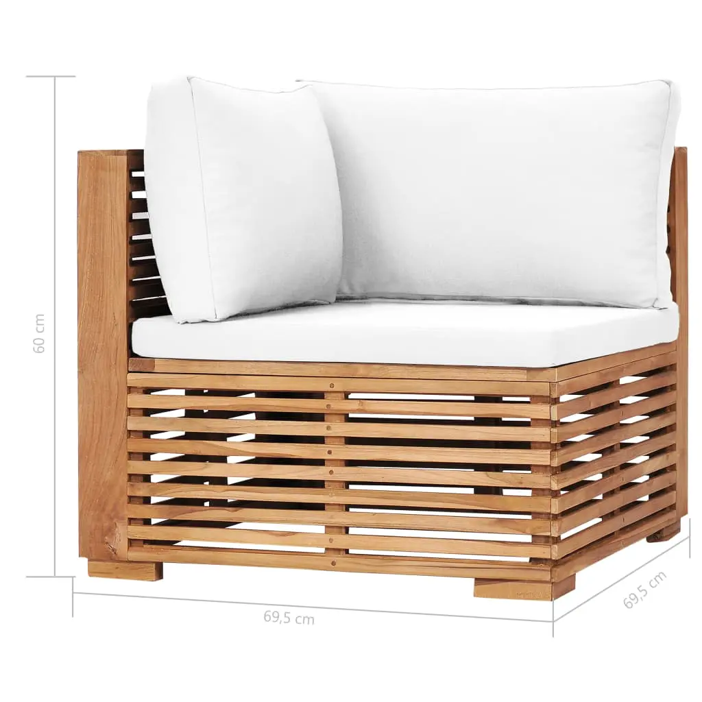 This teak garden sofa, standing out with the slatted design and soft cushions, will make a great addition to your garden, terrace or patio for chatting with family and friends or just enjoying the weather. Constructed from extremely durable teak hard wood, this piece of teak furniture has been seasoned, kiln dried and then fine sanded to give a very smooth appearance. Teak wood is known for its exceptional strength and weather resistance, making it far more suitable for garden furniture than any other kind of wood. Teak wood is the perfect choice if you want to purchase a long lasting piece of garden furniture. The thickly padded seat and back cushions add to utmost comfort. The sanded surface is easy to clean with a damp cloth. It also lightweight, flexible and easy to move around, which makes it easy for you to create different layouts and fit your needs. You can find other sectional sofa units with same design and style in our shop, so as to arrange your own lounge patterns.