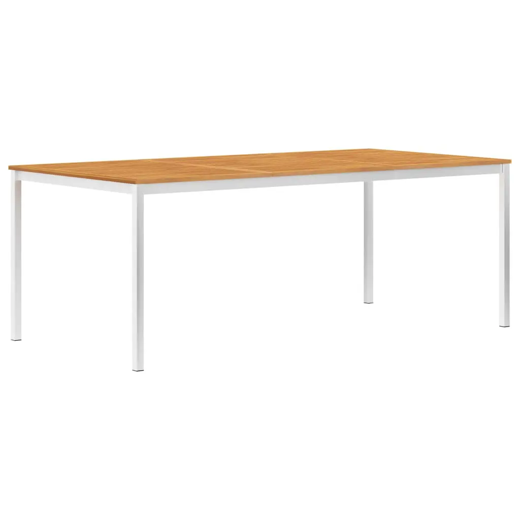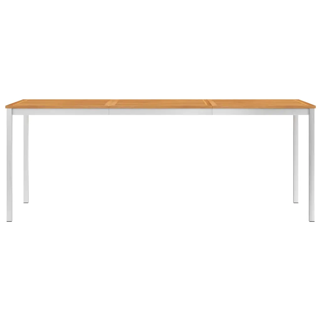 This stylish and elegant garden dining table is designed to add a luxurious touch to any dinner and be the focal point of your garden, terrace or patio. The dining table is made of solid acacia wood in teak look and high grade stainless steel 304. Hence, it is weather-resistant, rust-resistant and highly durable. The oil finished surface also makes it easy to clean with a damp cloth. It can match any living space and let you enjoy a certain quality time. Our dining table is easy to assemble.