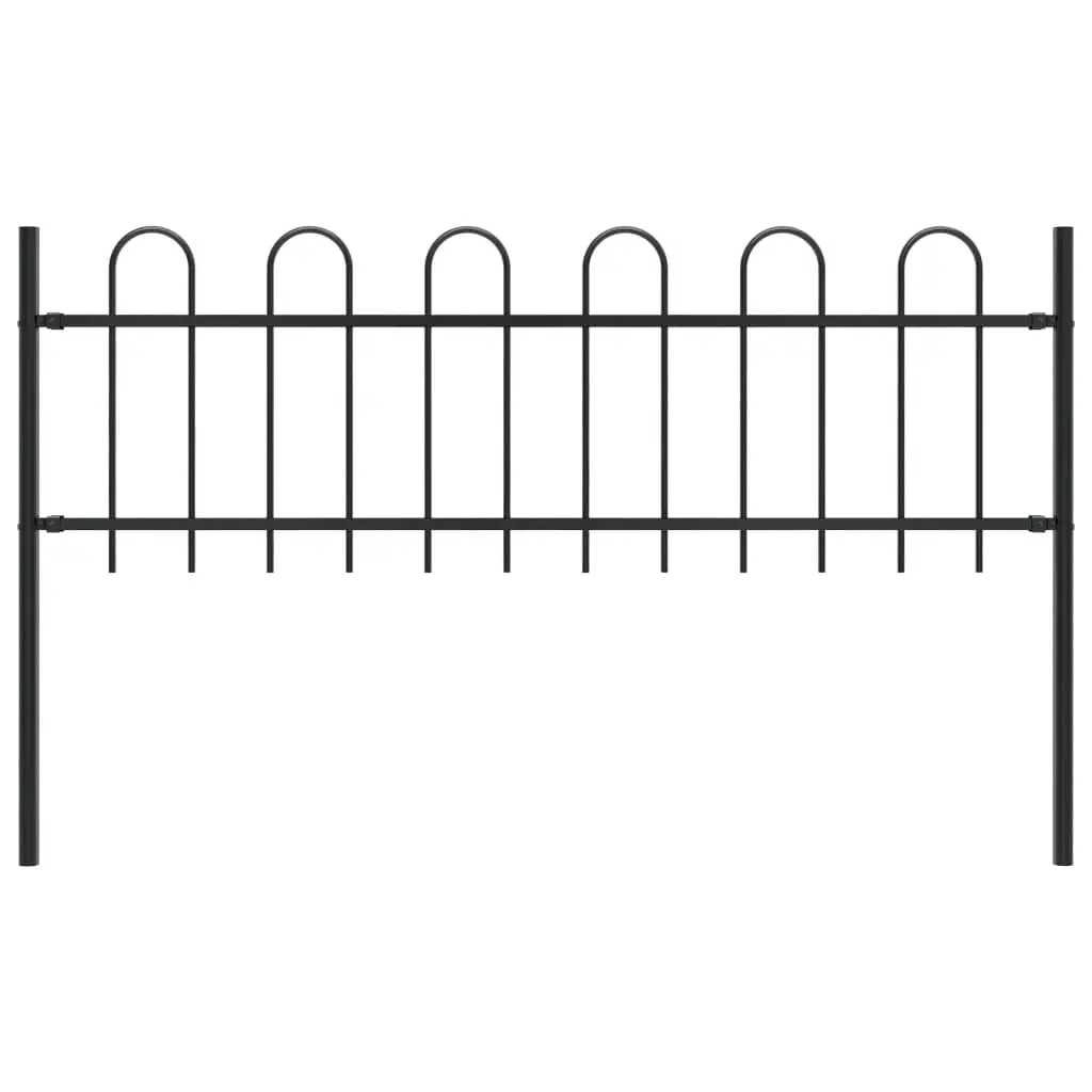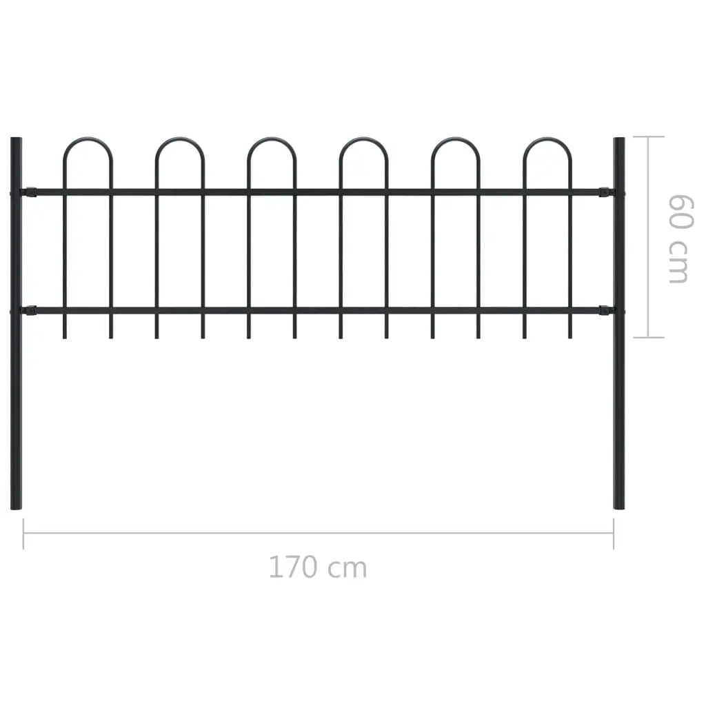 Create an elegant fence around your garden, home, or walkway with our garden fence! Our decorative steel garden fence, consisting of 1 fence panel and 2 posts, has a total length of 1,7 metres. It will form a sturdy, safe and maintenance-free perimeter barrier for your garden, home, or business property. With vertical bars with hoop top and strong horizontal brace as reinforcement to the frame, our garden fence will provide a high degree of security. Manufactured from heavy-duty, powder-coated steel, the outdoor fence is very strong and thus stable, sturdy and durable. Thanks to the included mounting materials, the garden fence is easy to assemble. Note: You can buy more sets to make the fence as long as you like.