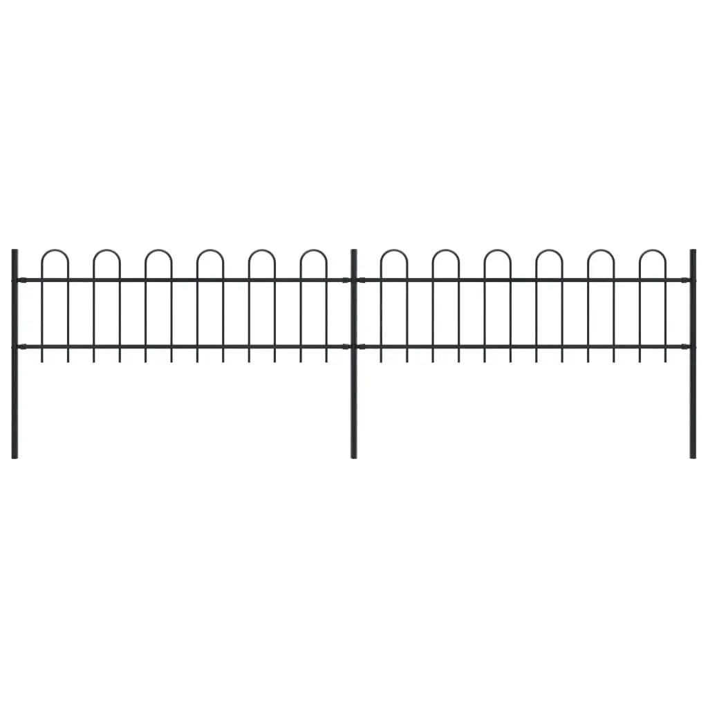 Create an elegant fence around your garden, home, or walkway with our garden fence! Our decorative steel garden fence, consisting of 2 fence panel and 3 posts, has a total length of 3,4 metres. It will form a sturdy, safe and maintenance-free perimeter barrier for your garden, home, or business property. With vertical bars with hoop top and strong horizontal brace as reinforcement to the frame, our garden fence will provide a high degree of security. Manufactured from heavy-duty, powder-coated steel, the outdoor fence is very strong and thus stable, sturdy and durable. Thanks to the included mounting materials, the garden fence is easy to assemble. Note: You can buy more sets to make the fence as long as you like.