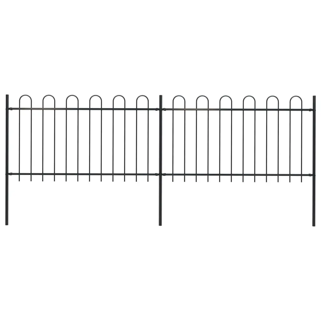 Create an elegant fence around your garden, home, or walkway with our garden fence! Our decorative steel garden fence, consisting of 2 fence panel and 3 posts, has a total length of 3,4 metres. It will form a sturdy, safe and maintenance-free perimeter barrier for your garden, home, or business property. With vertical bars with hoop top and strong horizontal brace as reinforcement to the frame, our garden fence will provide a high degree of security. Manufactured from heavy-duty, powder-coated steel, the outdoor fence is very strong and thus stable, sturdy and durable. Thanks to the included mounting materials, the garden fence is easy to assemble. Note: You can buy more sets to make the fence as long as you like.