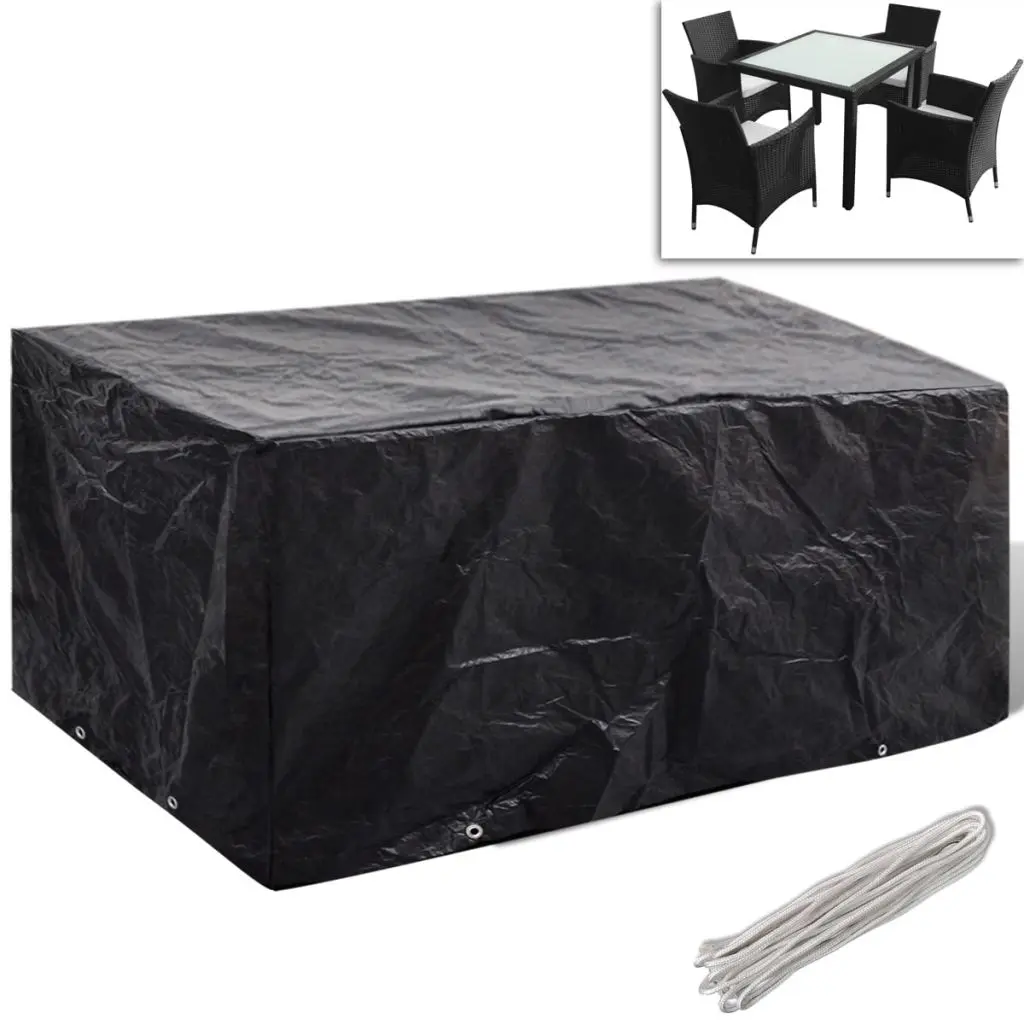 This high-quality garden furniture cover is suitable for protecting your rattan sets from dirt, wind, rain and UV light year round. The cover is made of durable polyethylene, which is waterproof, UV-resistant, tearproof and thus suitable for daily use. It has 8 aluminium eyelets and a fastening rope, so it will fit your set better. The cover is suitable for our 4 Person Rattan Set with SKU 40896 / 40897 / 41279. You can also use this cover for other furniture sets, as long as it is consistent with the size of your furniture.