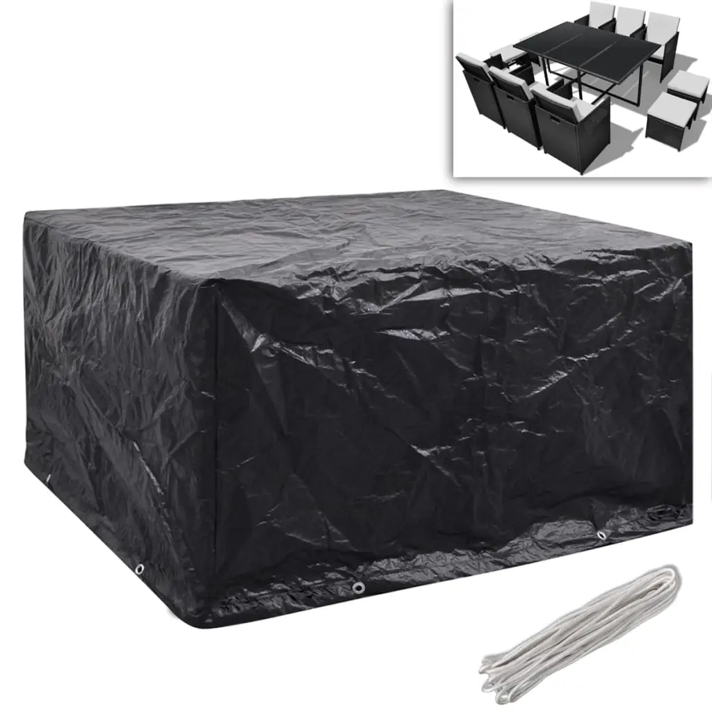 This high-quality garden furniture cover is suitable for protecting your rattan sets from dirt, wind, rain and UV light year round. The cover is made of durable polyethylene, which is waterproof, UV-resistant, tearproof and thus suitable for daily use. It has 8 aluminium eyelets and a fastening rope, so it will fit your set better. The cover is suitable for our 6 Person Rattan Set with SKU 40923 / 40836. You can also use this cover for other furniture sets, as long as it is consistent with the size of your furniture. Delivery includes 2 garden furniture covers
