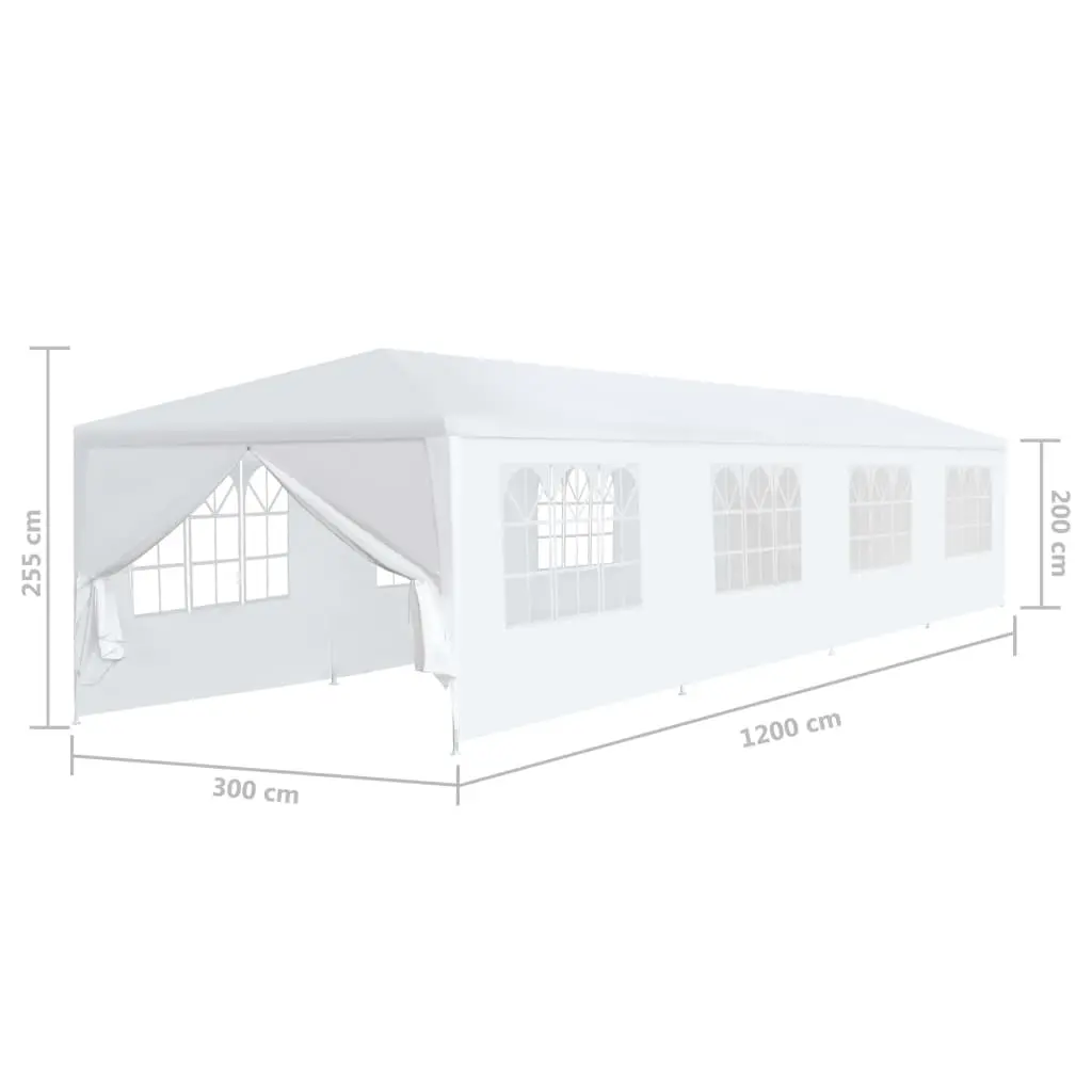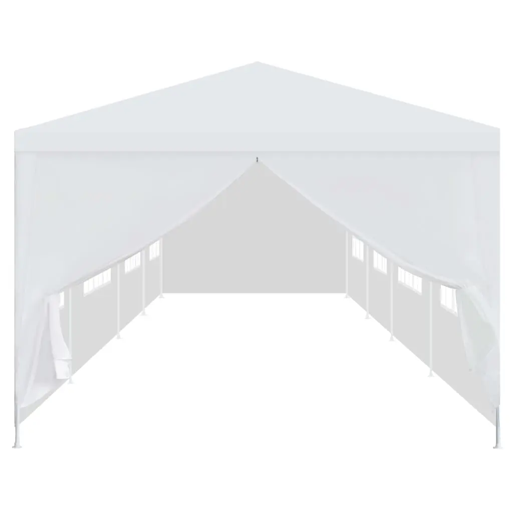 This garden marquee is a wonderful place to entertain your family and friends at all sorts of outdoor parties and get-togethers. You can also install it in your backyard as a large sunshade for your family and guests. Made of 100% polyethylene material, the party tent is UV resistant and water resistant. The marquee has 8 removable side panels, each with decorative windows, and 2 door panels with zips for easy entrance. This frame is manufactured from rust-resistant steel and thus highly durable. This tent is easy to assemble. Please note that we recommend treating the canopy with a waterproof spray if the marquee is subjected to heavy rainfall. NOTE: This product should NEVER be used under bad weather, such as strong wind, heavy rain, snow, storm, etc.