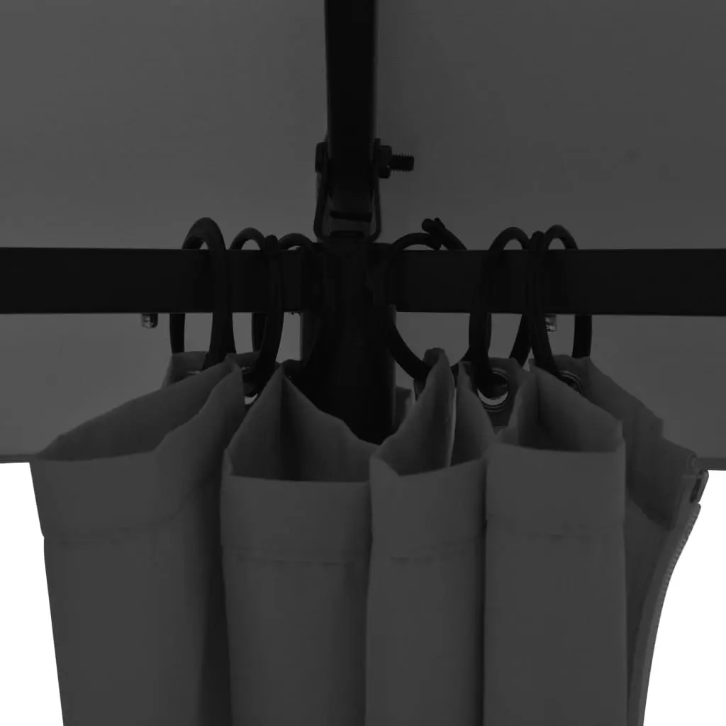 This gazebo with curtains features a classic and graceful design. It will make the perfect sunshade retreat for outdoor events, such as dinners, BBQs, family gatherings and so on. The water- and weather-resistant roof and curtains are made of polyester fabric with PA coating. The frame is solidly constructed from strong powder-coated steel, and therefore it is resistant to rust and considerably stable. The canopy features a stylish double-vented design that allows for better ventilation. Additionally, the easy-to-clean polyester curtains can be closed to provide more privacy or kept out of the way with the included tiebacks. This gazebo will definitely be a perfect choice for your garden get-togethers. The tent is easy to assemble. NOTE: This product should NEVER be used under bad weather, such as strong wind, heavy rain, snow, storm, etc.