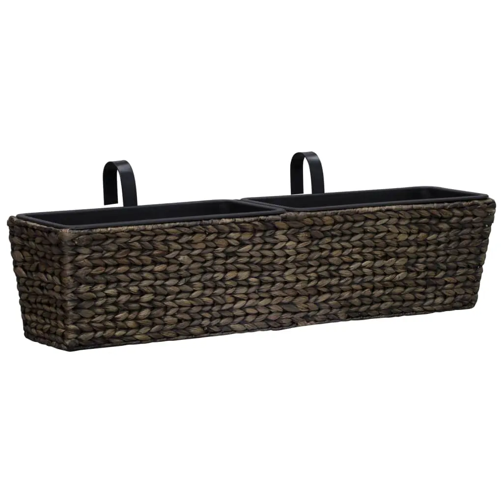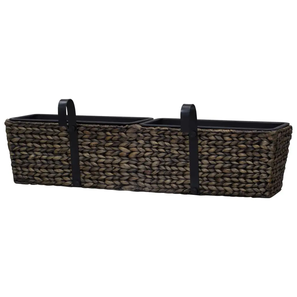 This adorable garden planter set consists of 2 water hyacinth planters and 4 removable pots. Made of highly durable water hyacinth, this planter will be a real attention-grabbing addition to your outdoor space. They will fit most of your windowsills or balcony railings. Its tight weaving structure and two metal holders produce a smooth finish and great stability. Additionally, equipped with 2 plastic containers inside, this planter set will ensure a long service life. All kinds of lively green plants and flowers can be well placed into the pots. Get ready to have some fresh air from your garden, terrace and balcony with our glamorous planters! Delivery includes 2 planters with 4 removable pots.