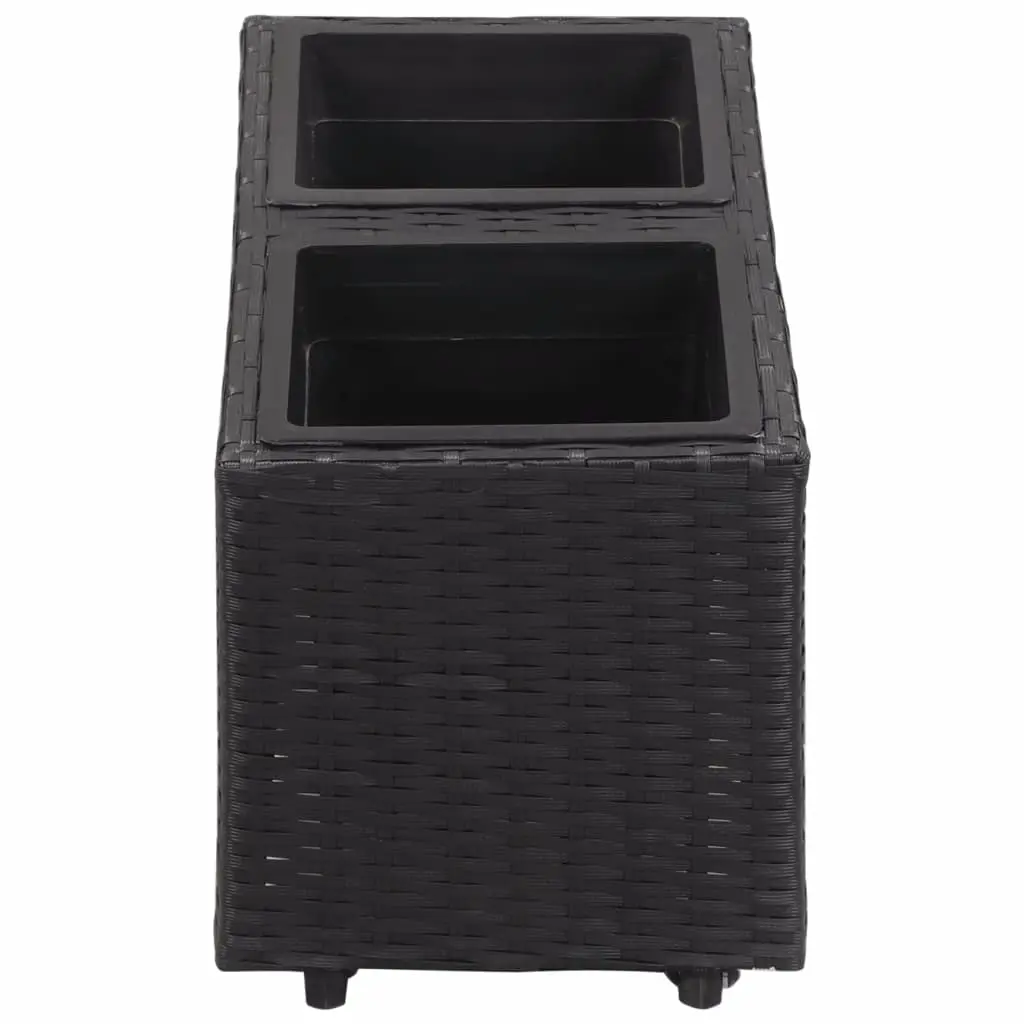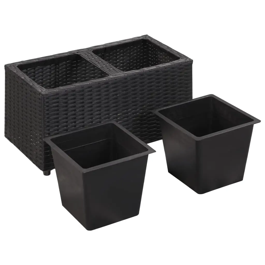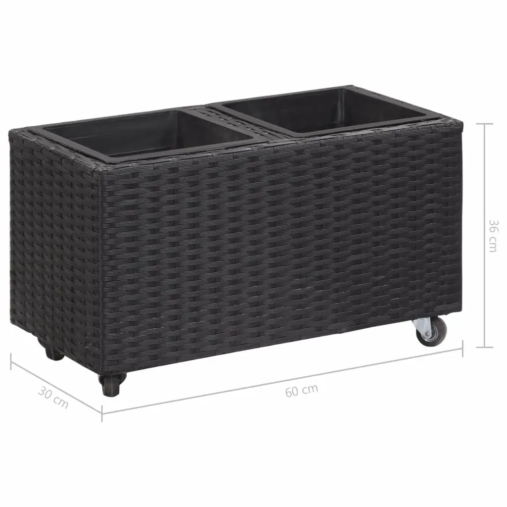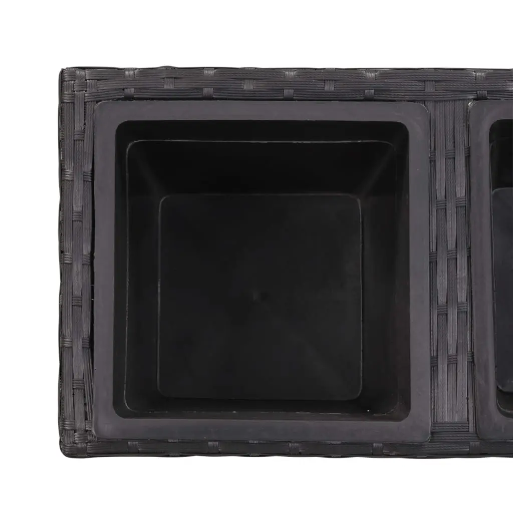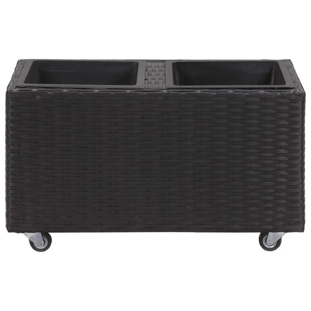 This lovely garden raised bed set consists of 1 poly rattan planter, 2 plastic pots and wheels. Made of durable water-resistant poly rattan, this planter will be a perfect addition to your outdoor space. Its tight weaving structure produces a smooth finish and great stability. The 2 containers inside the planter set ensure long service life. You can place all kinds of lively green plants and flowers in the pots. Additionally, the design of wheels can bring convenience. Get ready to have some fresh air from your garden, terrace and balcony with our beautiful planters! Delivery includes 1 planter and 2 pots.
