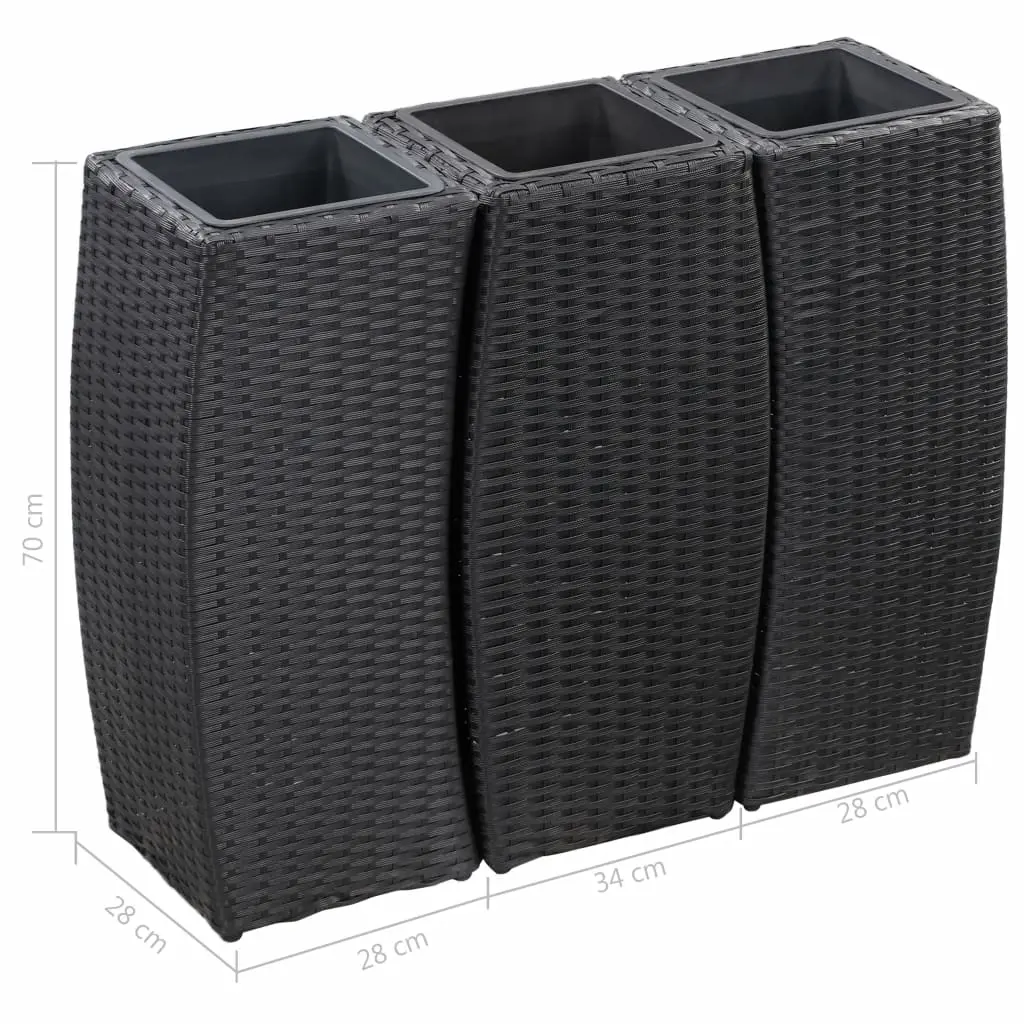 This lovely garden raised bed set consists of 3 rattan planters. Made of durable water-resistant rattan, this planter will be a perfect addition to your outdoor space. Its tight weaving structure produces a smooth finish and great stability. All kinds of lively green plants and flowers can be well placed into the pots. Get ready to have some fresh air from your garden, terrace and balcony with our beautiful planters! Delivery includes 3 curved planters in different sizes.