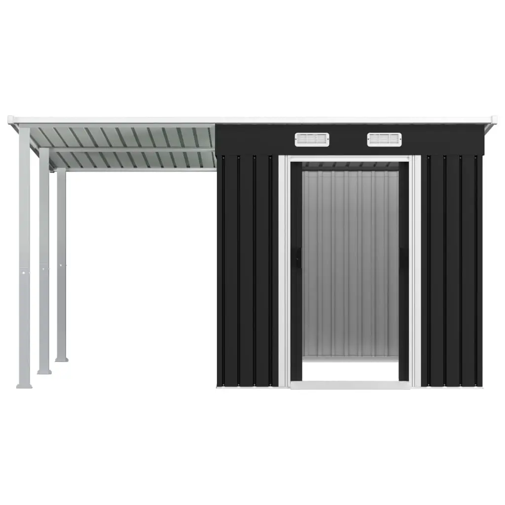 Our storage shed is perfect for storing a wide variety of items like tools, garden furniture, garden equipment, etc. The storage house is designed with ventilation shutters. It keeps the rain away and also provides ventilation at all times to reduce the accumulation of moisture and odour in the house. Its double sliding doors allow easy entry and exit. With its corrosion-resistant galvanised steel construction, the tool shed is weather-resistant and suitable for outdoor use for a long time. Featuring an extended roof that can be fixed on either side of the shed, the log shed provides you with additional storage space. The outdoor storage house is also easy to assemble.