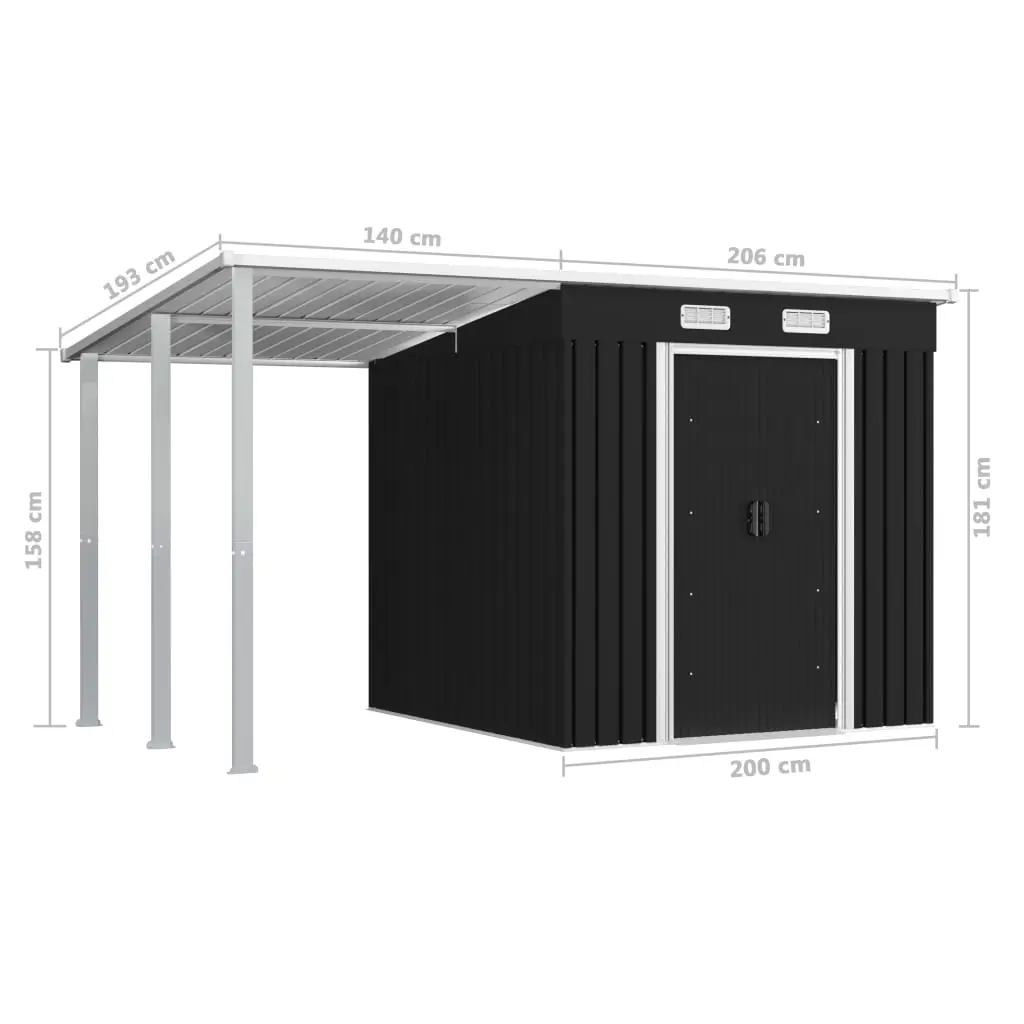 - Shed dimensions: 206 x 193 x 181 cm (W x D x H)