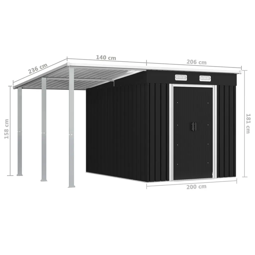 - Shed dimensions: 206 x 236 x 181 cm (W x D x H)