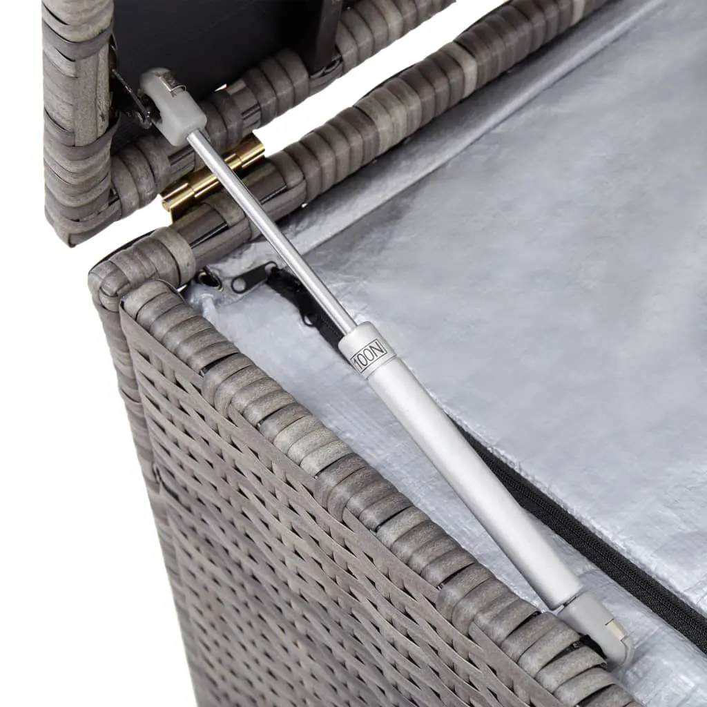 This water-resistant PE rattan garden storage chest will be ideal for storing blankets, pillows, cushions, toys, books and other items lying around in the garden or on the patio. This storage chest has a water-resistant lining, which makes it an ideal storage solution for your garden furniture cushions and all manner of other objects. Thanks to the weather- and water-resistant PE rattan, the storage box is easy to clean, hard-wearing and suitable for daily outdoor use. The chest has a sturdy, powder-coated steel frame, which is highly durable. The water-resistant, polyester lining will protect the contents from moisture.