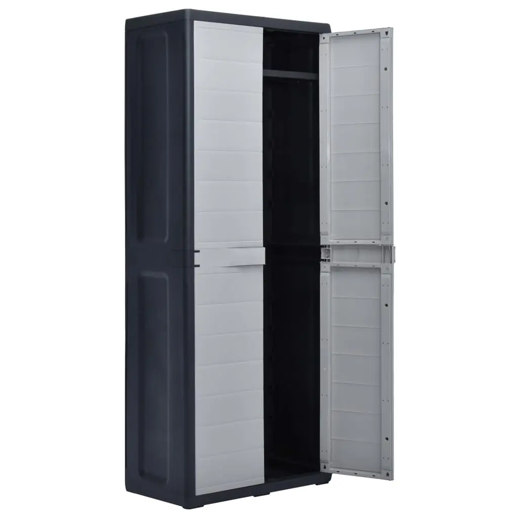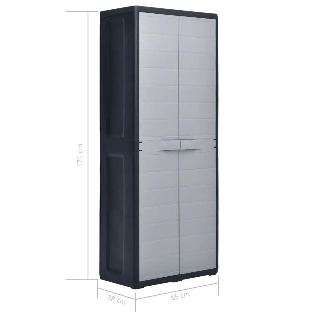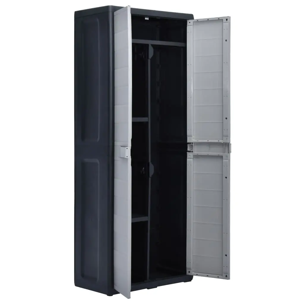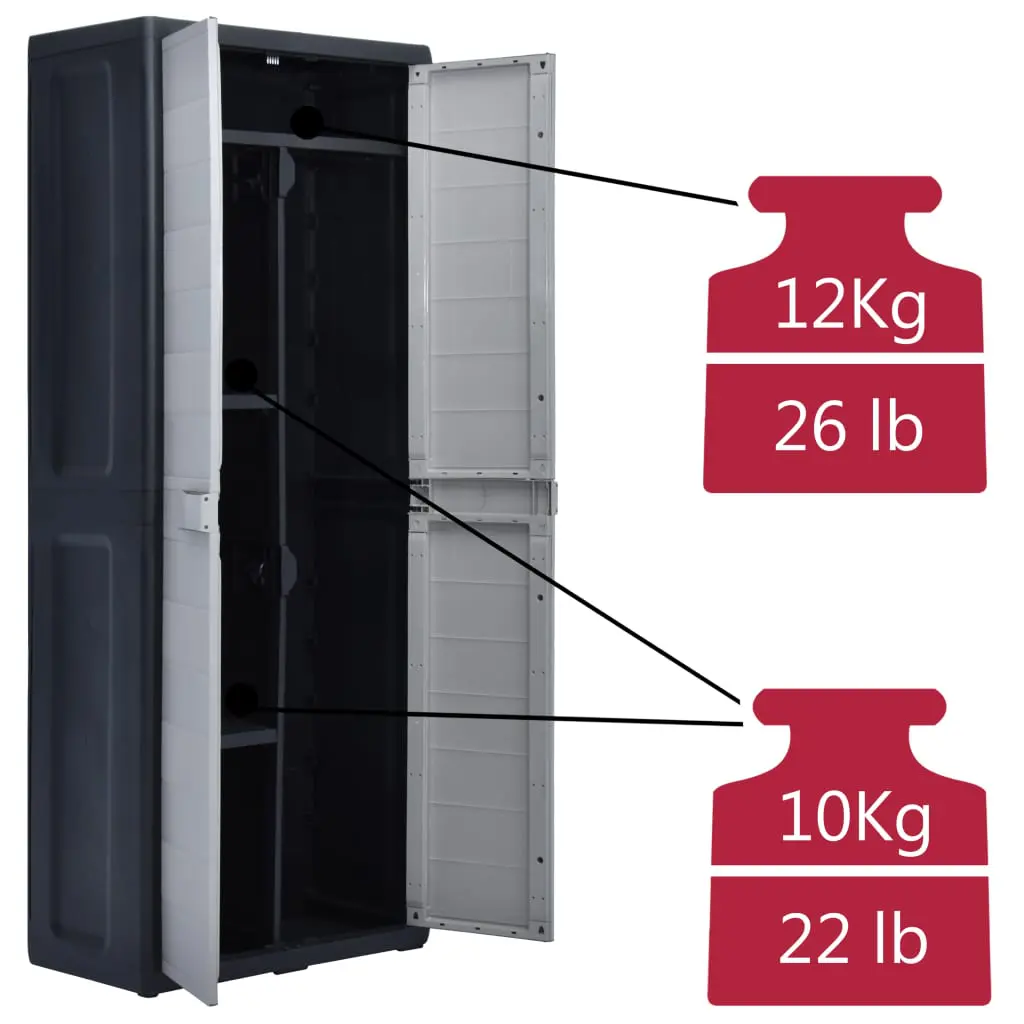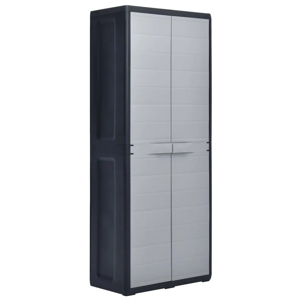 Our storage cabinet is ideal for organising and storing your household supplies, tools or other items in the garden or on the patio, etc. This cabinet will blend into any decor with its timeless design. This cabinet is made of sturdy, durable plastic. The spacious storage cabinet has 3 shelves which can be adjusted to accommodate items of different sizes. The garden cabinet can be locked with a padlock for added safety (the lock is not included). This outdoor storage cabinet is very easy to clean. The garden cabinet has a compact design and will make the most use of limited space. This storage cabinet is easy to assemble.