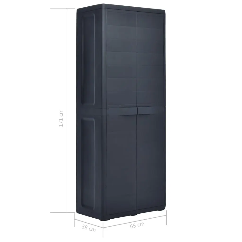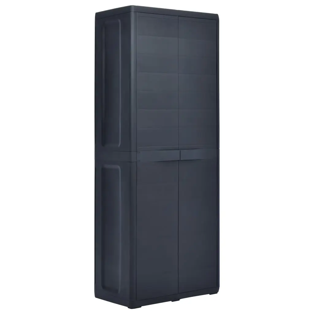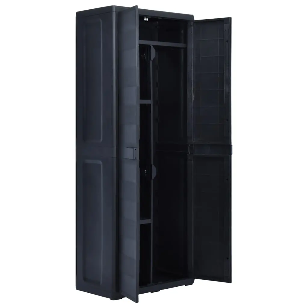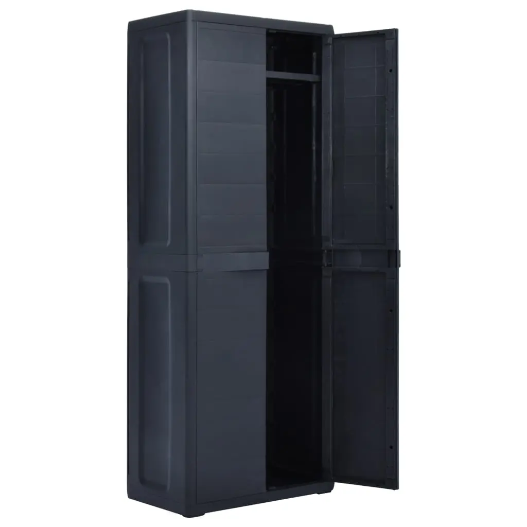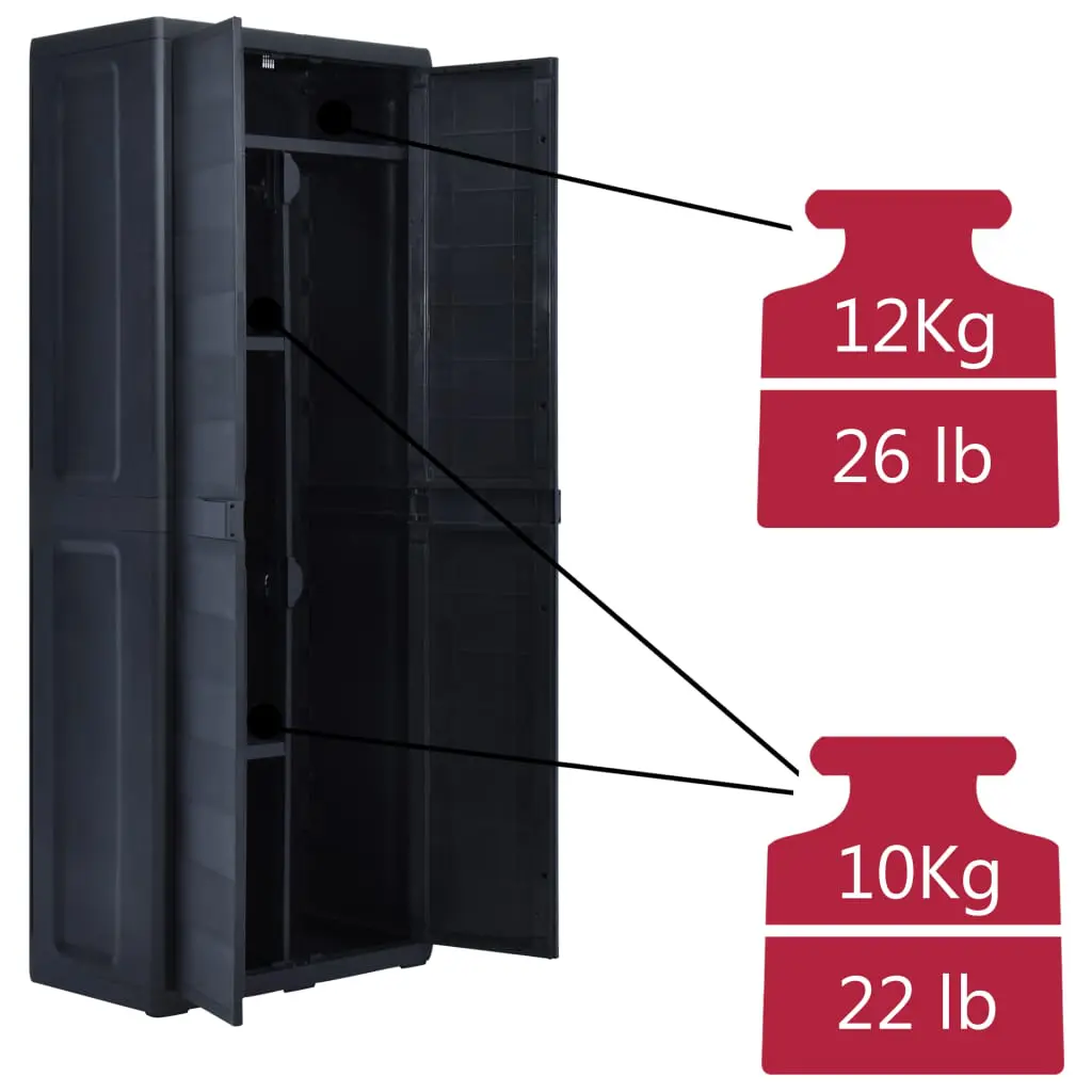 Our storage cabinet is ideal for organising and storing your household supplies, tools or other items in the garden or on the patio, etc. This cabinet will blend into any decor with its timeless design. This cabinet is made of sturdy, durable plastic. The spacious storage cabinet has 3 shelves which can be adjusted to accommodate items of different sizes. The garden cabinet can be locked with a padlock for added safety (the lock is not included). This outdoor storage cabinet is very easy to clean. The garden cabinet has a compact design and will make the most use of limited space. This storage cabinet is easy to assemble.