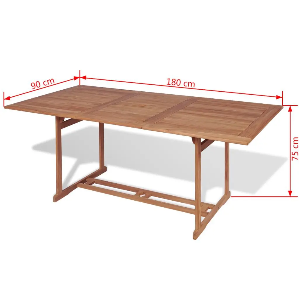 This teak outdoor dining table has a classic design and is perfect for al fresco dining in the garden or on the patio. Constructed from extremely durable teak hard wood, this piece of teak furniture has been seasoned, kiln dried and then fine sanded to give a very smooth appearance. Teak wood is known for its exceptional strength and weather resistance, making it far more suitable for garden furniture than any other kind of wood. Teak wood is the perfect choice if you want to purchase a long lasting piece of garden furniture. The surface is easy to clean with a damp cloth. The tabletop has a parasol hole, so you can enjoy the summer breeze without worrying about the burning sun. The wooden product is applied with beautiful finish to give the wood a warm colour. Delivery includes 1 dining table. Please note that a parasol is not included in the delivery.