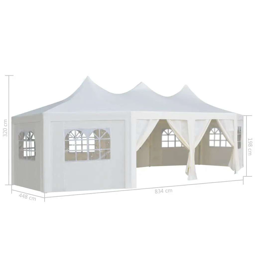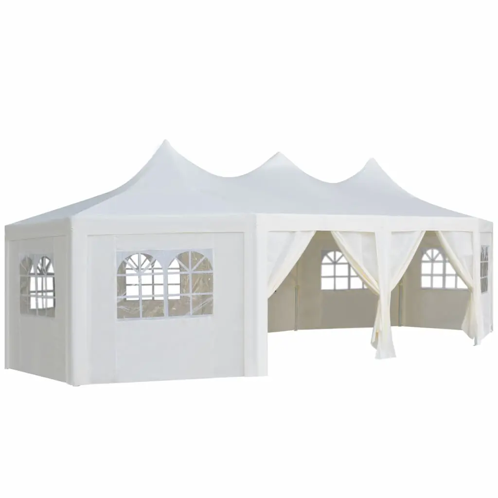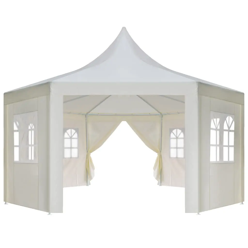 This spacious gazebo with sidewalls will definitely be making an elegant addition to your outdoor living space. The garden marquee will keep the sun and rain from spoiling the fun at family gatherings, barbecues, afternoon picnics, and birthday parties. The party tent has a sturdy powder-coated steel frame with sidewalls and a polyester roof with a PA coating, making it UV and water resistant. The canopy has reinforced corners as well as hook and loop fasteners, enabling it easily attached to the gazebo’s frame. Important note: The gazebo has not been designed as a permanent structure, and accordingly it is not recommended to use it in extreme weather conditions.