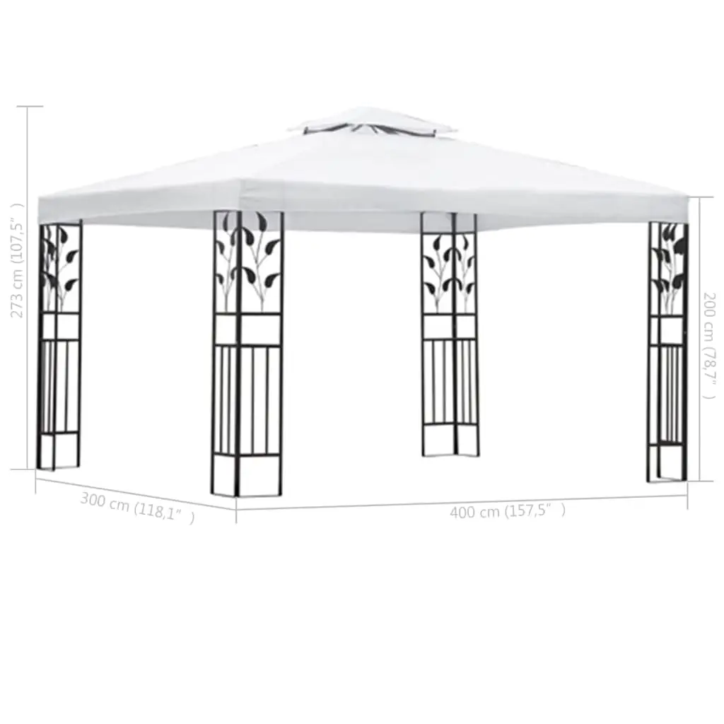 This spacious gazebo with ornate floral details will make an elegant addition to your outdoor living space while keeping your family and guests cool and shaded on sunny days. The vented canopy will keep the sun and rain from spoiling the fun at family gatherings, barbecues, afternoon picnics, and birthday parties. The party tent has a sturdy steel construction with ornate floral details and a polyester roof. The canopy has reinforced corners and hook and loop fasteners with which it is easily attached to the gazebo’s frame. NOTE: This product should NEVER be used under bad weather, such as strong wind, heavy rain, snow, storm, etc.