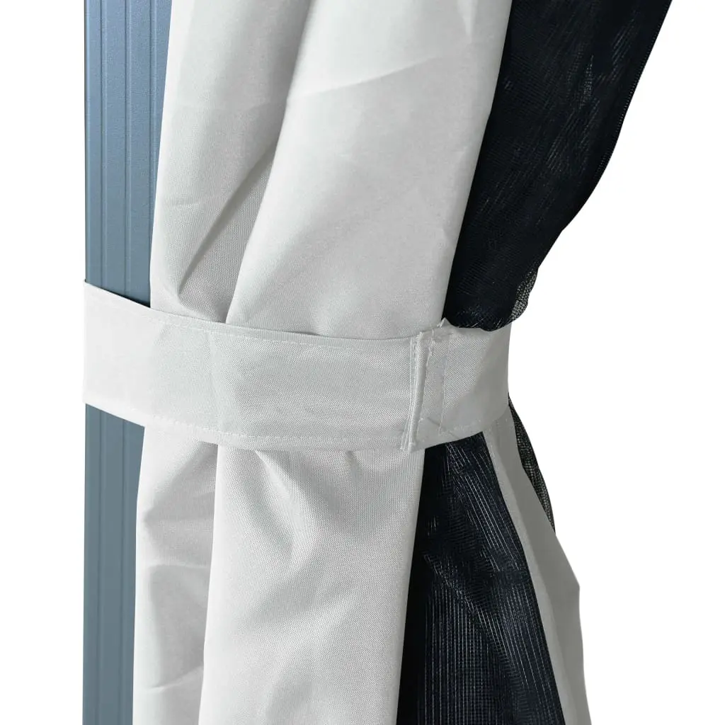 This gazebo with curtains features a classic and elegant design, which will cater the perfect sunshade shelter for outdoor events, such as dinners, BBQs, family gatherings along with other activities. The roof, made of Oxford fabric with PA painting, guards you from the glare and harmful UV rays of direct sunlight. The gazebo is solidly constructed from strong aluminium and steel, and is consequently resistant to rust and very stable. The pavilion is delivered with 4 sidewalls, which can be drawn in bad weather. Mesh screens are also included to keep bugs out while ensure the well air circulation. Hook and loop fasteners are also included for easy attachment. The gazebo can be easily fixed to the ground with the included fixing accessories. The pavilion is easy to assemble. NOTE: This product should NEVER be used under bad weather, such as strong wind, heavy rain, snow, storm, etc.