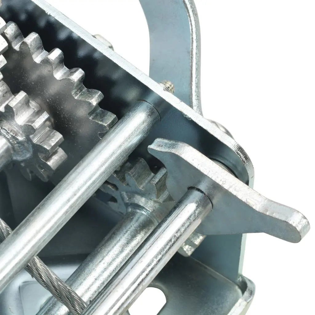 This 1360 kg / 3000 lbs hand winch is an ideal tool that makes it easier to pull large or heavy items. This high-quality hand winch, with a cable length of 10 m, is extremely sturdy. Thanks to the high-quality iron used in its construction, it is very durable. This high-quality hand winch is perfect for use on pickup trucks, trailers and other mobile applications. The winch handle is designed to be used for two separate axes; each axis has its own gear ratio, so you can choose to pull fast (but more force is necessary) or slow (less force will be necessary, better for pulling heavy objects). You can check our shop for the matching boat trailer winch stand (SKU 90634) for the complete set.