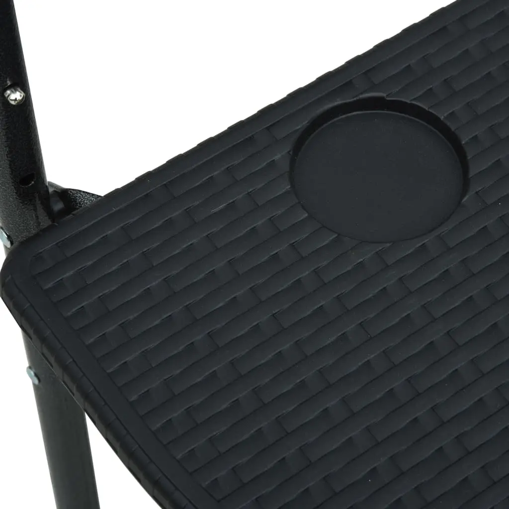 This hanging balcony table will make a great addition to your balcony, serving as a coffee table to place your drink or a convenient worktop to keep items such as garden tools and potted plants. Made of durable plastic, the tabletop is weather resistant and easy to clean. Its rattan look design adds a touch of natural charm to your balcony. With a sturdy steel frame, the table is highly stable. Additionally, the height can be adjusted in 3 levels to satisfy your requirements. The table can be folded to save space when not in use.