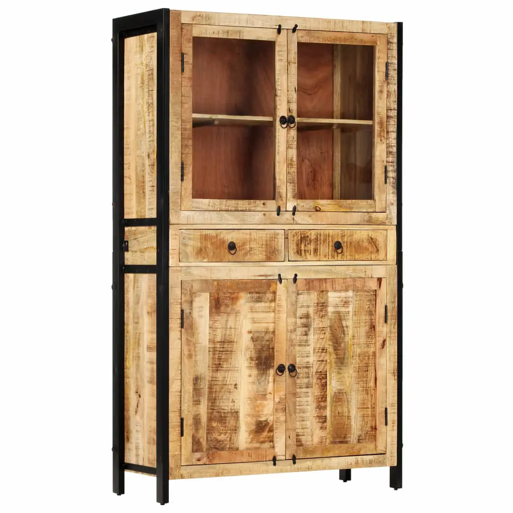 If you’re looking for a simple touch of the rustic as well as industrial charm to add to your interior decor, our solid mango wood highboard will do the trick. Equipped with multiple compartments with doors and 2 drawers for various items, this sideboard will definitely be a practical and eye-catching addition in your home. The storage cabinet is made of solid mango wood that has been applied to a beautiful finish by polishing and lacquering, which exudes a refined look. The exquisite craftsmanship and the beautiful wood grains make every piece of furniture unique and slightly different from the next. Additionally, the powder-coated steel frame contributes to the stable and sturdy structure and adds to the wooden cabinet’s industrial style as well. Important note: Variations in colour and wood grain makes each of our highboard unique and slightly different from the next; the delivery is random.