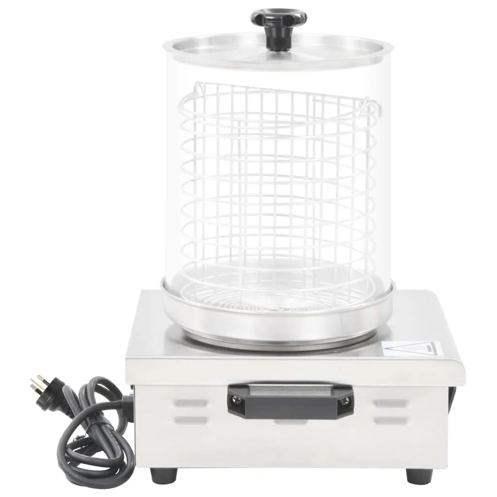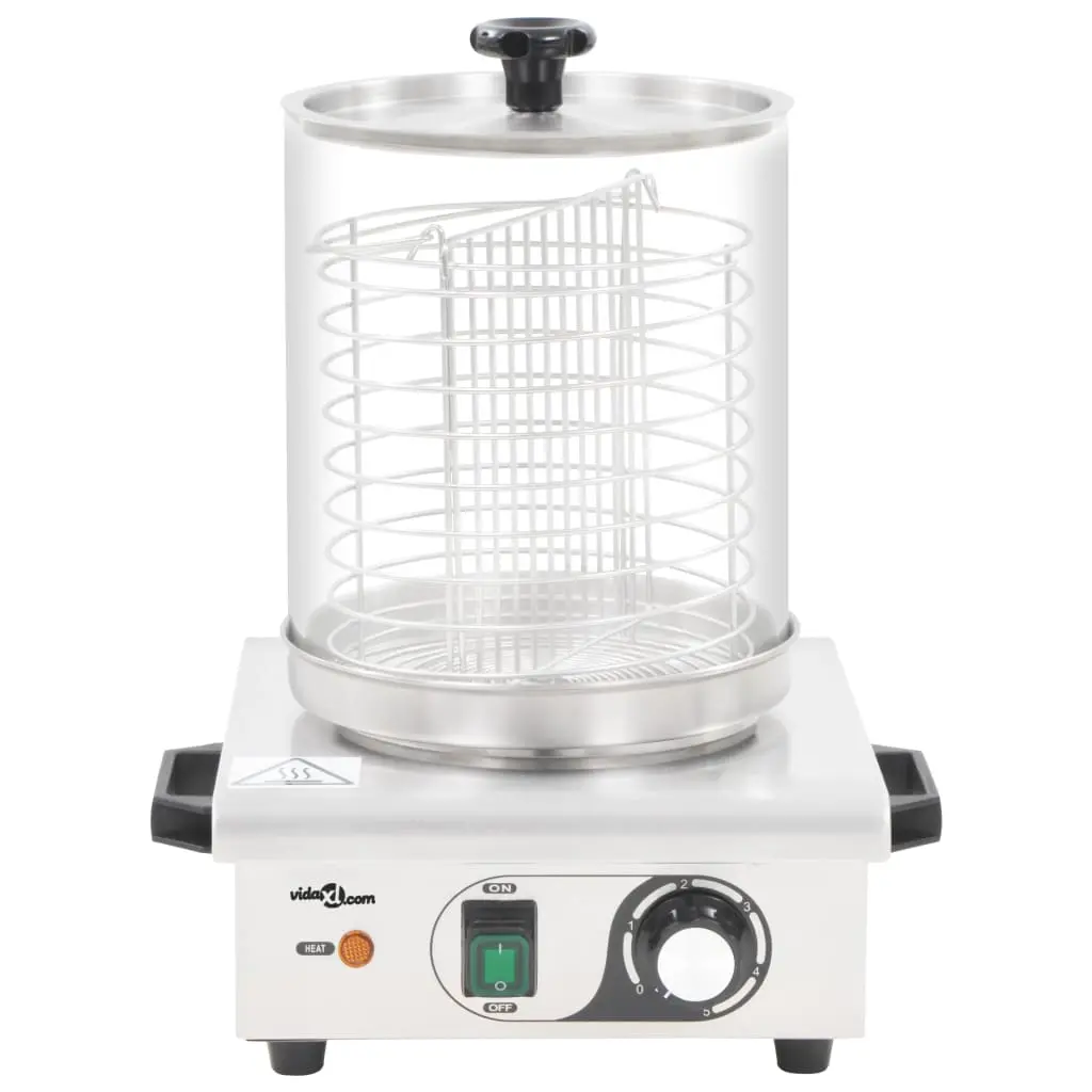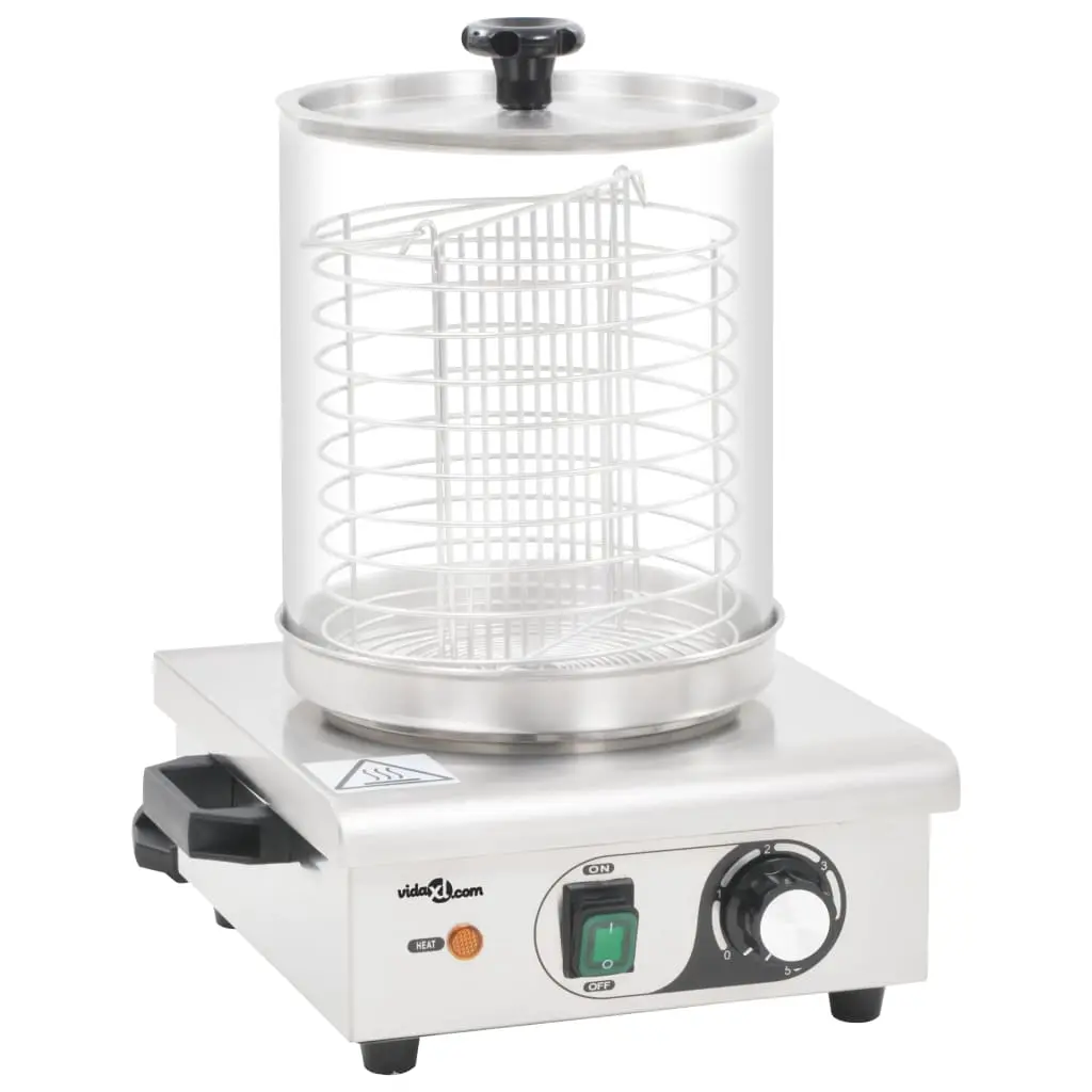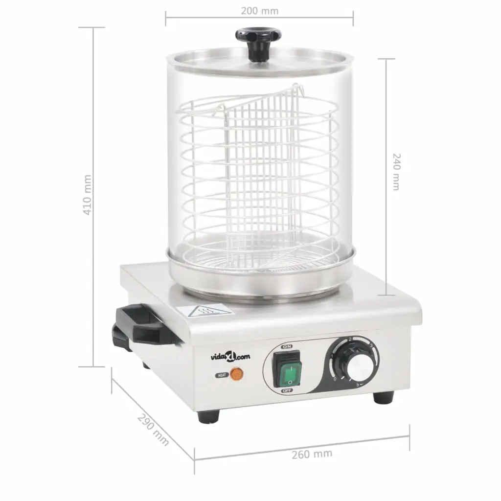 Our professional hot dog warmer will be an indispensable device in your kitchen as well as suitable for commercial places like restaurants, snack bars, food stalls, food truck or catering. Made of stainless steel with a borosilicate glass cylinder, the hot dog maker is highly durable and easy to clean. The glass cylinder not only allows you to quickly heat the sausages, but also to keep them warm for hours. The temperature is adjustable and can effectively heat up to 100℃. The rubber feet ensures a secure stability. The hot dog warmer is easy to store and transport thanks to its compact design. The glass for the hot dog warmer is also available on our shops in case you want to warm different style sausages.