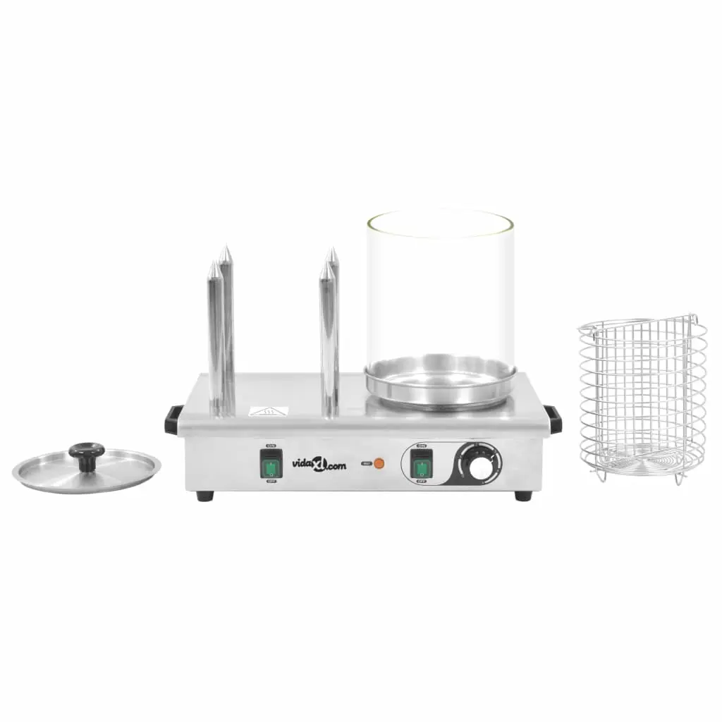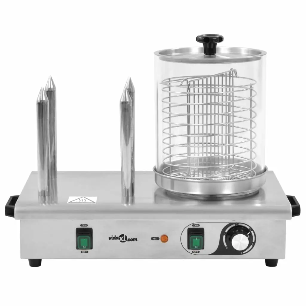 Our professional hot dog warmer will be an indispensable device in your kitchen as well as suitable for commercial places like restaurants, snack bars, food stalls, food truck or catering. Made of stainless steel with a borosilicate glass cylinder, the hot dog maker is highly durable and easy to clean. The glass cylinder not only allows you to quickly heat the sausages, but also to keep them warm for hours. The warmer is also equipped with 4 heating rods for bread or other food. The temperature is adjustable and can effectively heat up to 100℃. The rubber feet ensures a secure stability. The hot dog warmer is easy to store and transport thanks to its compact design. The glass for the hot dog warmer is also available on our shops in case you want to warm different style sausages.