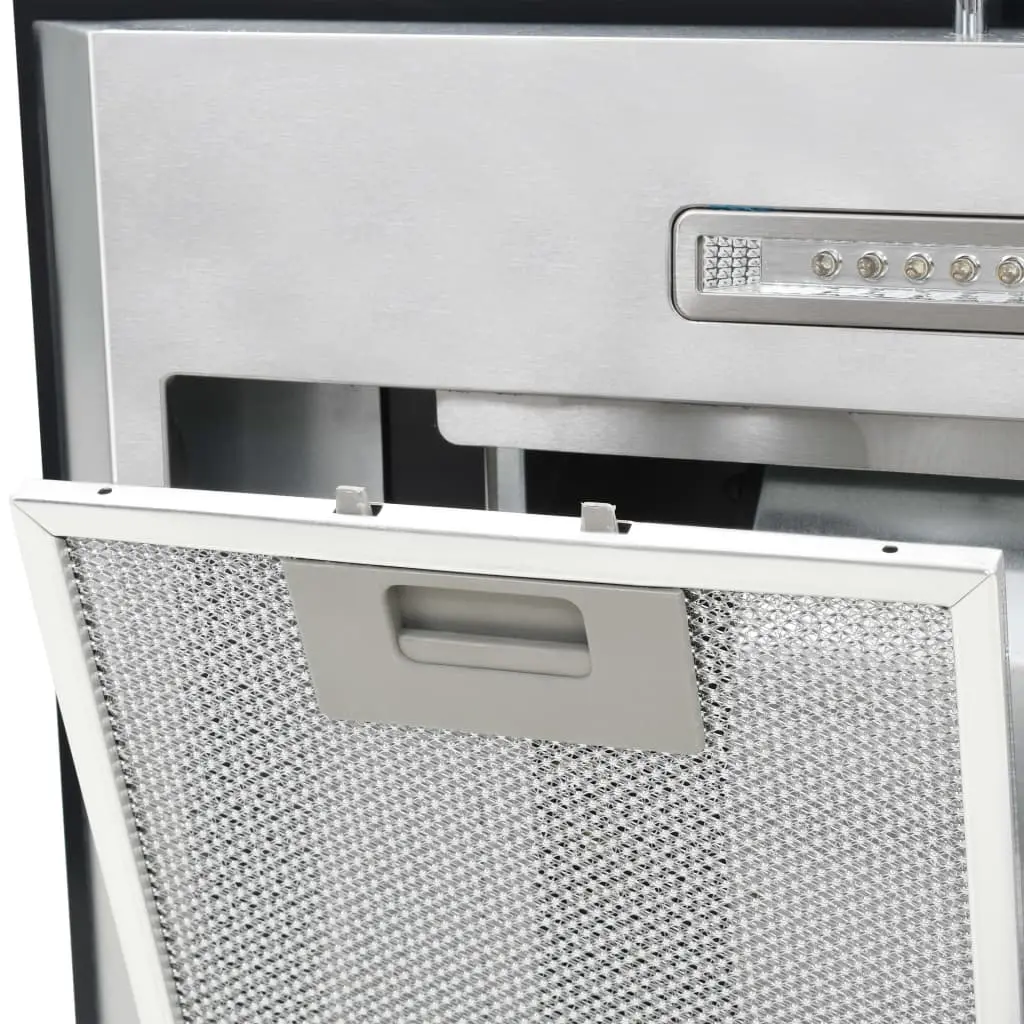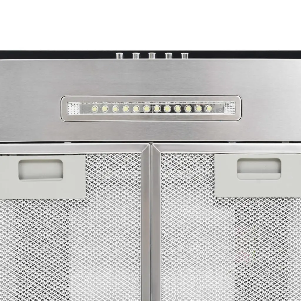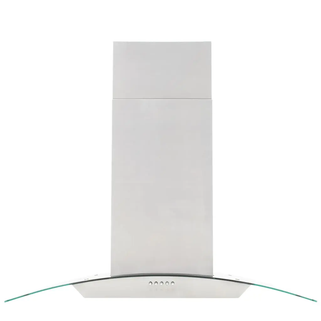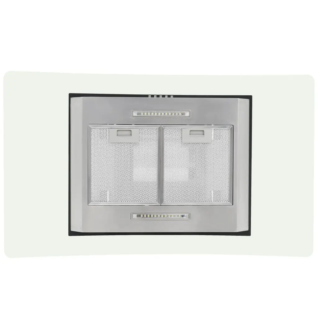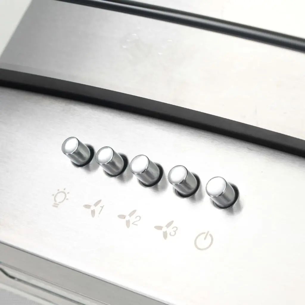 Our low-noise and powerful island range hood is ideal for effectively extracting smoke, grease, moisture and even heat from your kitchen. Its stainless steel housing is combined with a sleek, curved tempered glass canopy, giving your kitchen a stylish and modern look. This island hood is equipped with two 3-layer washable aluminium grease filters to protect the inside of the extractor hood and the exhaust pipe from grease. The built-in LED lights provide excellent illumination, to help with cooking and also to create a nice ambience in your kitchen. The extractor hood has 3 variable speeds to ensure you have a full control over the extraction rate and a charcoal filter that will help purify the air and release the cleaned air back into the kitchen, whilst external extraction transfers cooking odours to outside with the help of the included exhaust pipe. Assembly is easy. The island hood fits well in an open kitchen with a cooking island as a standalone hood, but can also be used if you do not have a cooking island.