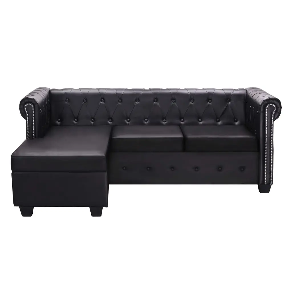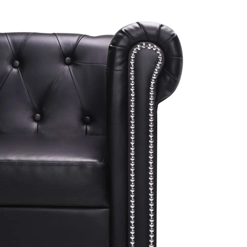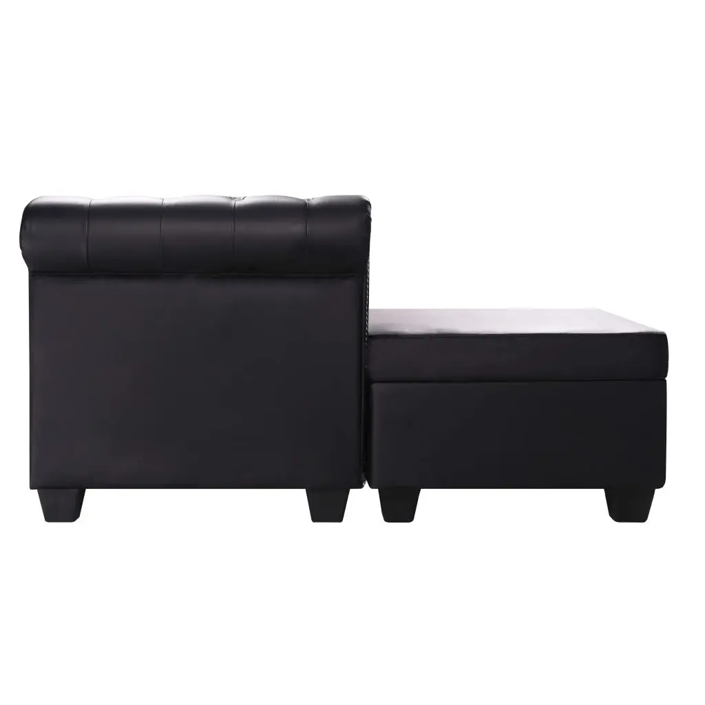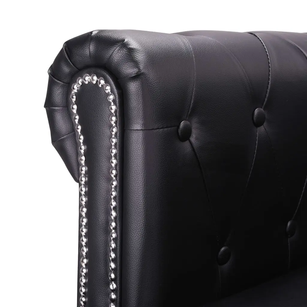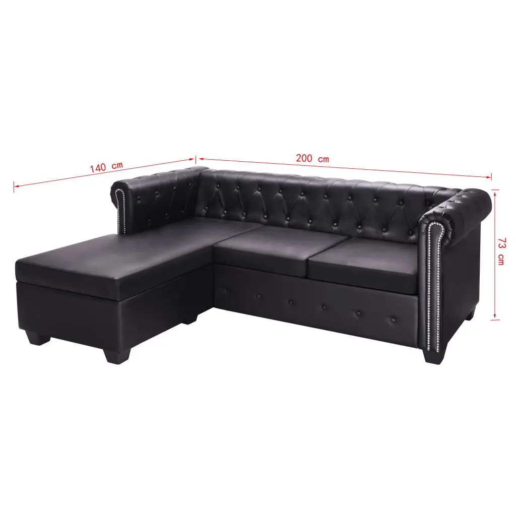 Our chesterfield sofa combines comfort and sophistication with its classic design and will be a great addition to any interior. We added a pouf so you can easily lie down and relax on the couch at any time. The button details and gracefully curved armrests will add a touch of luxury, while the thick-padded seats are extra comfortable. The high-quality artificial leather upholstery is easy to clean and hardwearing. The sofa is easy to assemble.