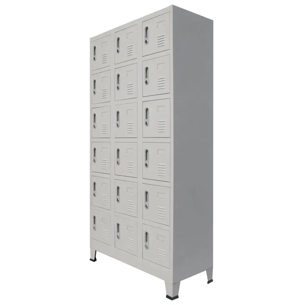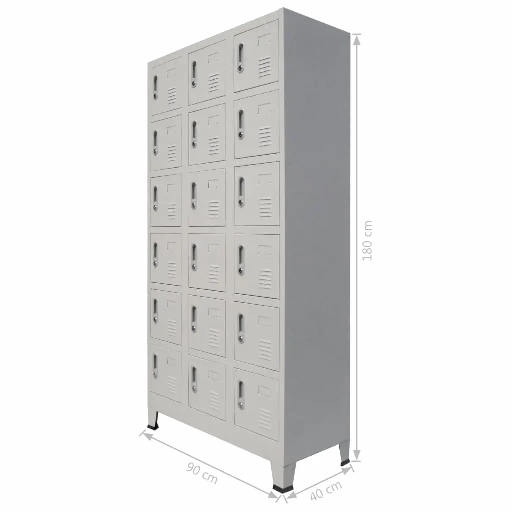 This locker cabinet will be ideal for gym locker rooms or company changing rooms. With 18 compartments with lockable doors, this locker cabinet has ample storage space for keeping clothes and other personal belongings safe. Each door has a name card holder and ventilation holes. This locker cabinet is made of sheet metal, making it durable and easy to clean. Assembly is easy.