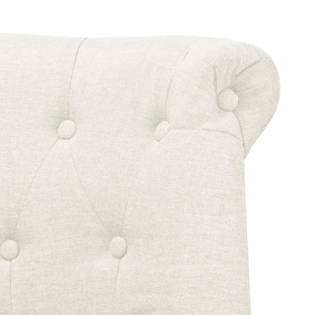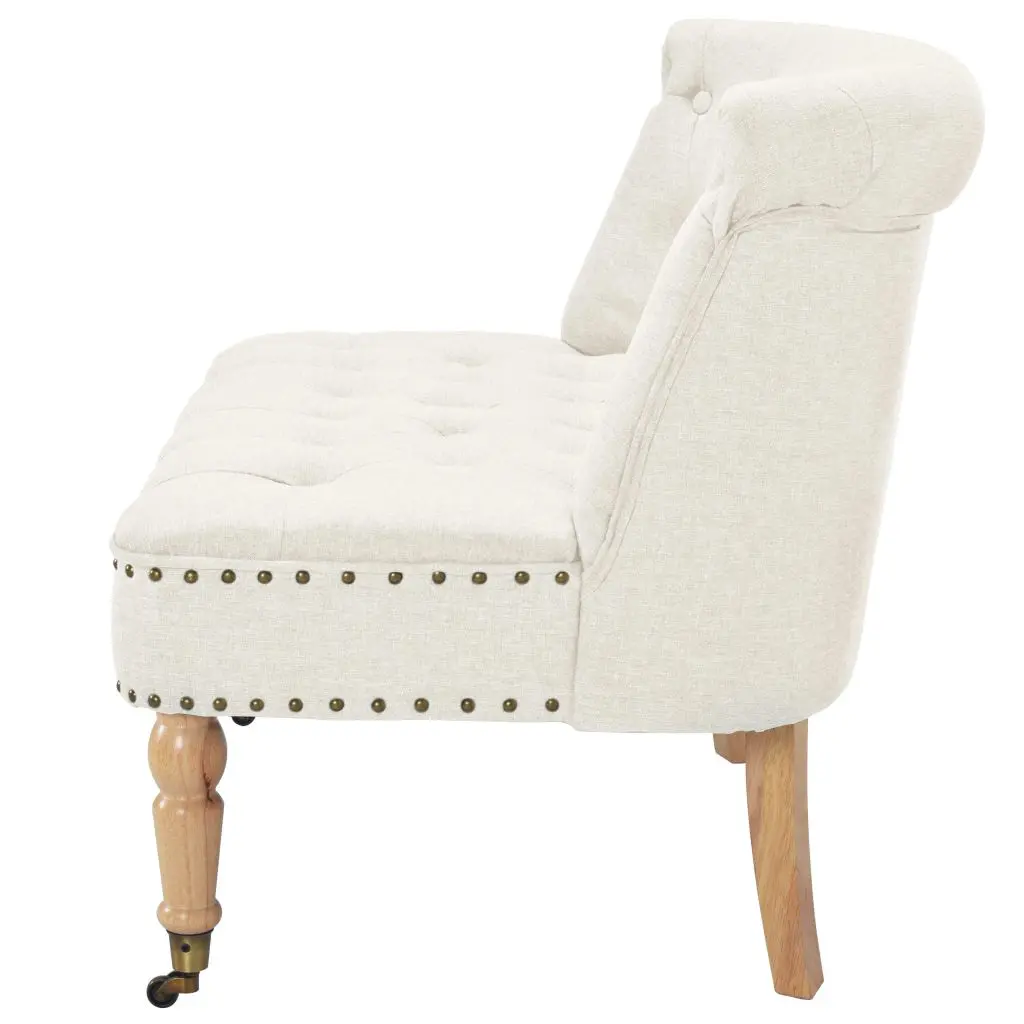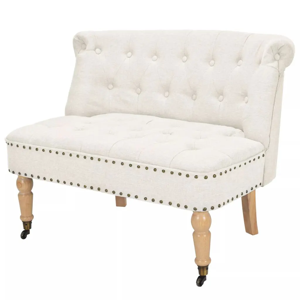 This elegantly designed loveseat will make a great addition to your home decor. It features a comfortable, thickly-padded fabric upholstery and a sturdy, high-quality wooden frame with stable rubberwood legs. The front legs are equipped with wheels, so you can easily move the loveseat. Assembly is easy.