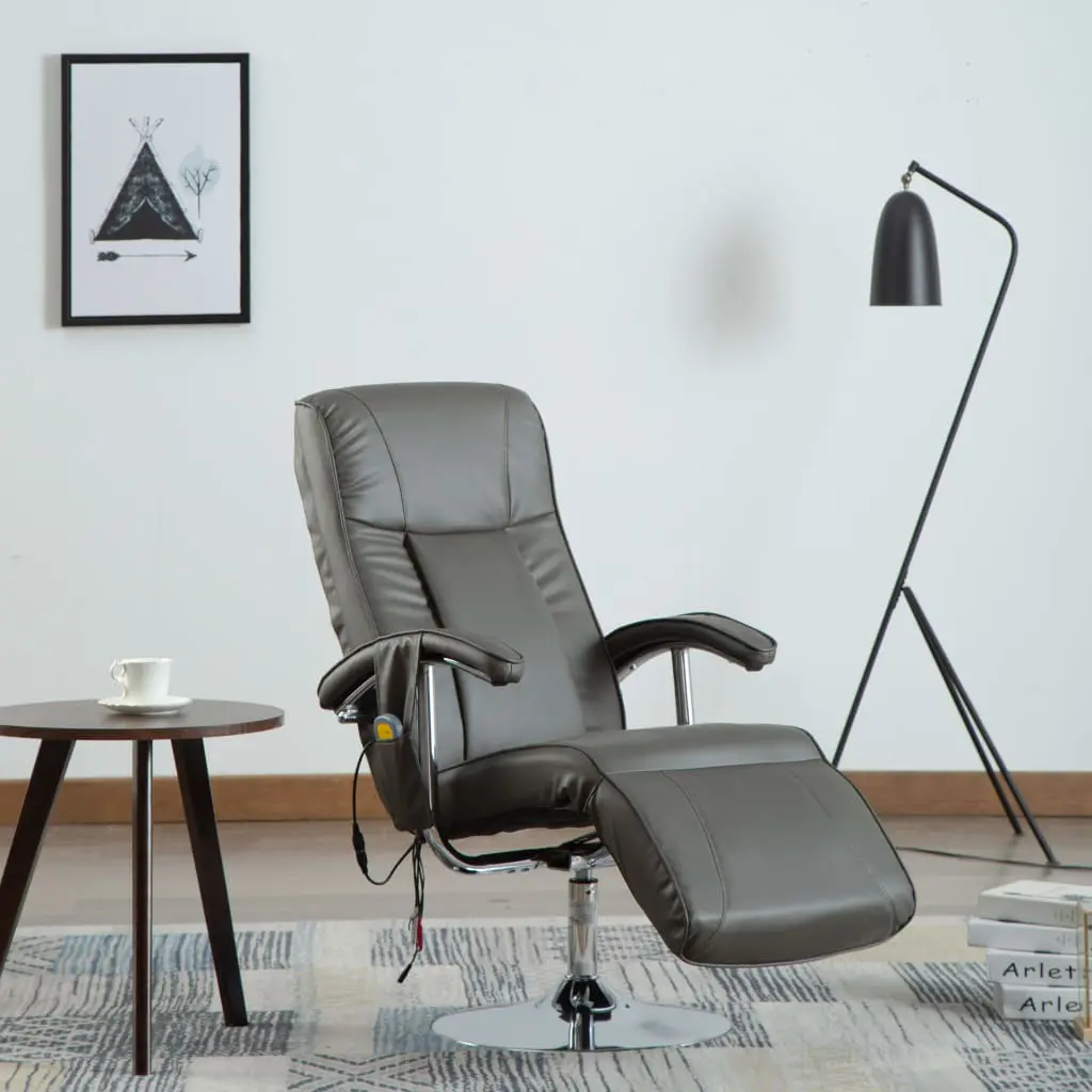 A good massage can revitalize your entire body — feel relaxed and refreshed in a matter of minutes with this electric massage chair! This high quality massage chair is ergonomically designed to give you full relaxation after a busy day. The whole seat is thickly padded to provide optimal comfort. The chair features 5 massage modes designed to sooth your head, neck, back, calf muscles, etc. Duration of massage is adjustable to your personal need. Its heat treatment helps to ease the tension around your lumbar area. The chair is padded with grey faux leather, which is easy to clean. Its back and foot rest is also synchronously adjustable. A remote control is included.