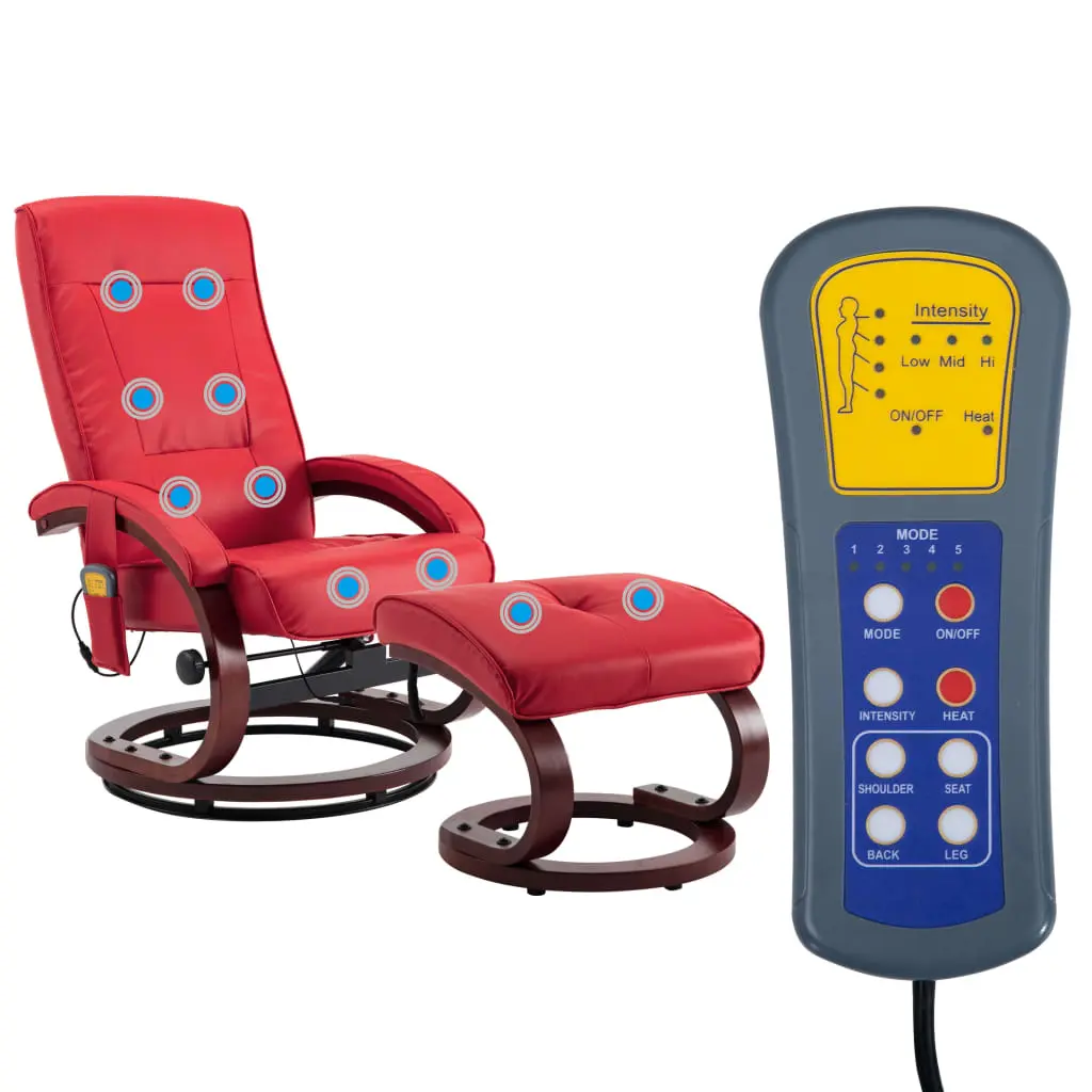 Sit down, drift away, and enjoy a wonderful relaxing massage after a busy day on this luxurious and highly comfortable massage recliner. Featuring a reclining mechanism, the angle of the chair can be easily adjusted from 125 to 130 degrees to meet your need. Upholstered in faux leather and supported by solid construction, the recliner is exceedingly durable and easy to clean. The thickly padded seat, backrest and armrests are pretty comfortable, bringing you full relaxation after a busy day. Additionally, with a 10-point massage in 3 intensity levels and 5 different modes, as well as a heating function, you can quickly forget the stress of everyday life. The reclining chair is easy to assemble. Bring the massage recliner set home and create a special place for reading, chatting, watching TV or just relaxing!