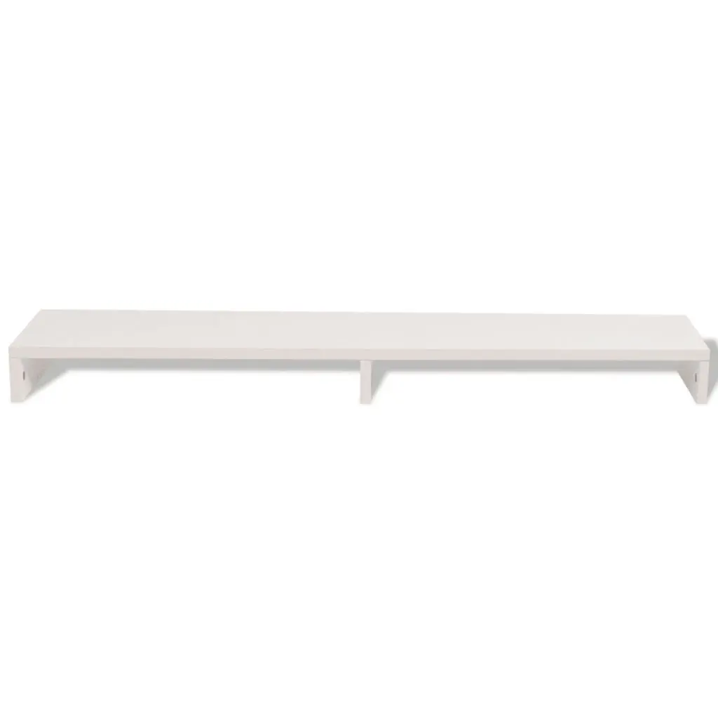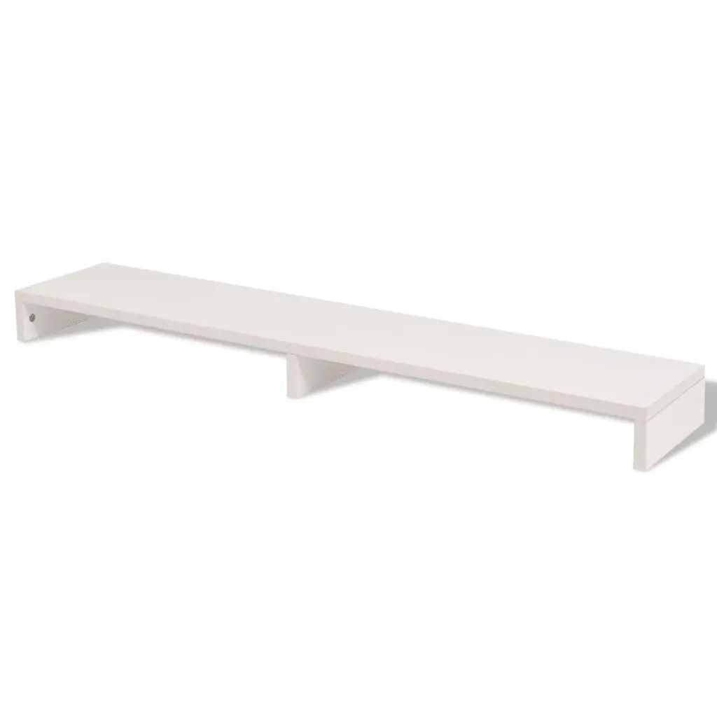 This practical monitor stand with a minimalist design will add a modern touch to your living space. This computer stand can be used as a TV stand or riser for your desktop monitor, or other multimedia devices. Raising your screen will reduce the strain on your neck or back. The two compartments underneath can accommodate your keyboard, DVD player, gaming console, streaming device, receivers, media carriers, etc. Made of chipboard, this screen riser is sturdy and durable yet stylish. All surfaces are easy to clean. Assembly is easy.