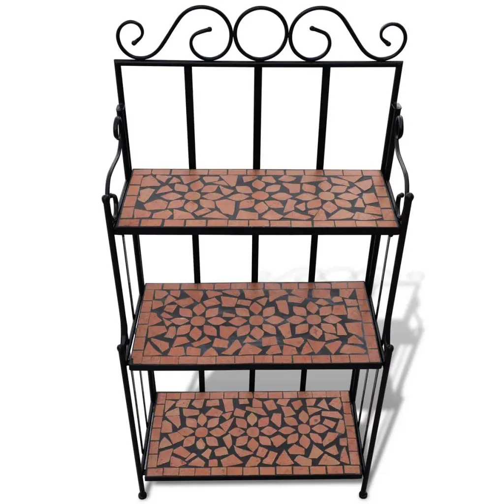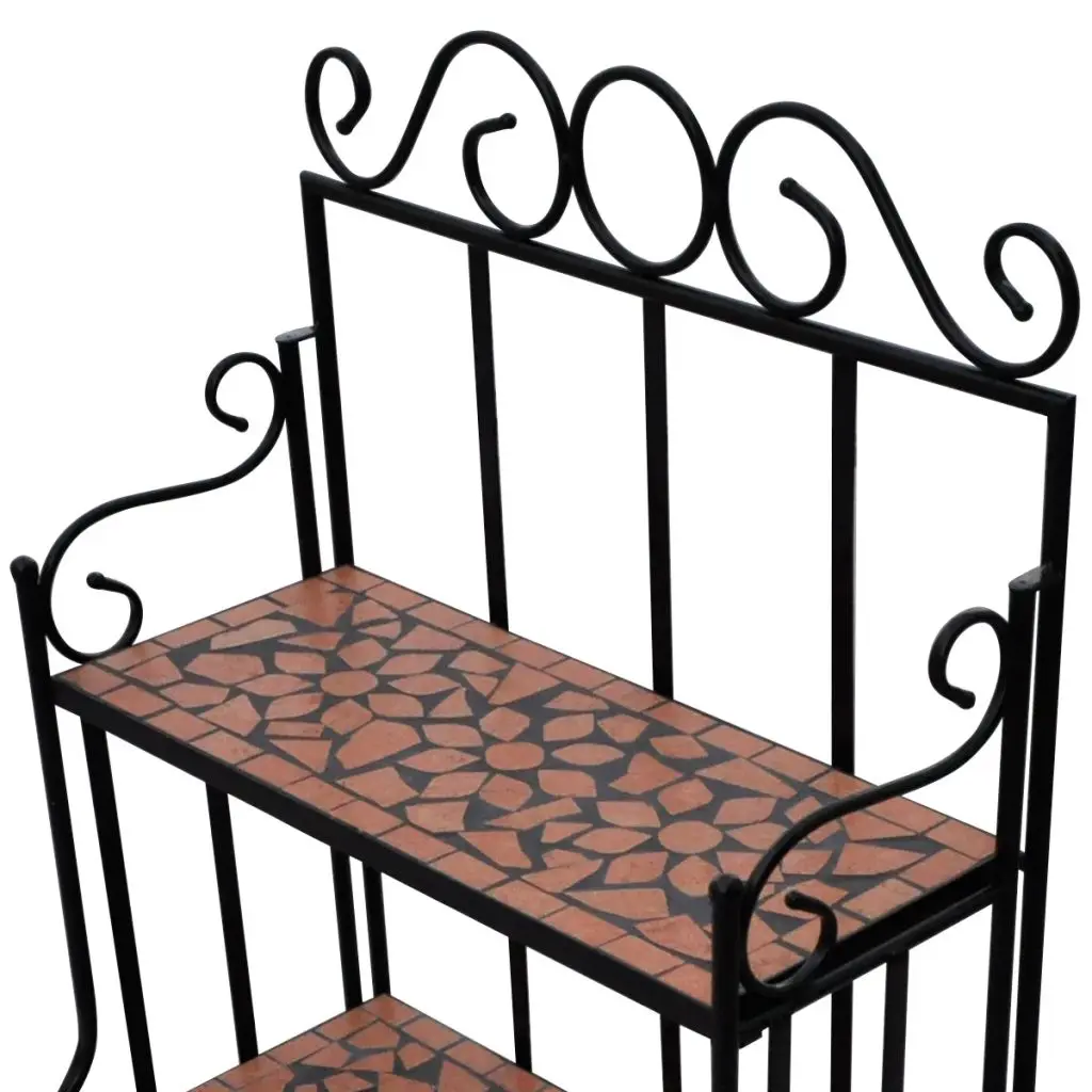 This mosaic plant stand features elegantly-curved iron frame and 3 mosaic-patterned ceramic layers. It will surely become an eye-catcher in your garden, balcony, terrace, etc. The 3-layer plant rack has a height of 115 cm, and could be perfectly placed against any wall. Its iron frame contributes to the sturdiness, while the ceramic top is weatherproof and easy to clean. It is very durable for a long-term service life.