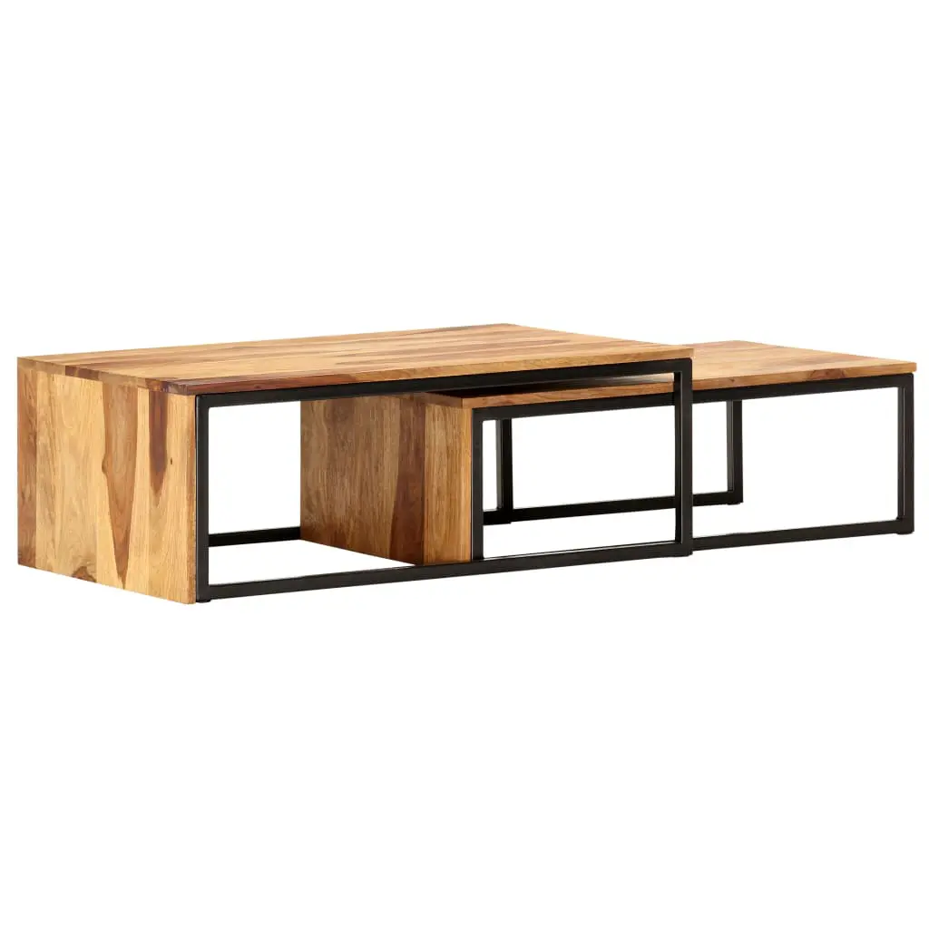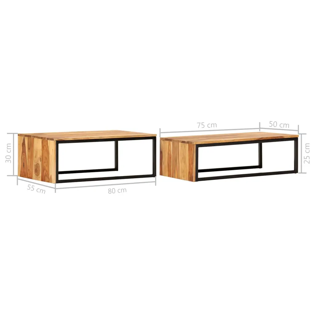 This set of solid wooden coffee tables exudes a vintage charm and will make a distinctive addition to your home with its unique design. They can also be used as side tables, end tables and living room tables. These tables are made of solid Sheesham wood and powder coated steel, which is solid, durable and beautiful. Sheesham is a tropical hardwood that is famous for its rich grains and also known as rosewood or palisander. Every step of the process is carried out with the greatest care, be it polishing, painting or lacquering. The craftsmanship and the beautiful wood grains make every piece of furniture unique and slightly different from the next. The sturdy tabletop offers you space to put some snacks, fruit baskets or other decorative items. While not in use, the two tables can be stacked to save space. These coffee table sets are easy to assemble. Important note: The wood grains and colours may vary from piece to piece, making each of our coffee tables unique; the delivery is random.