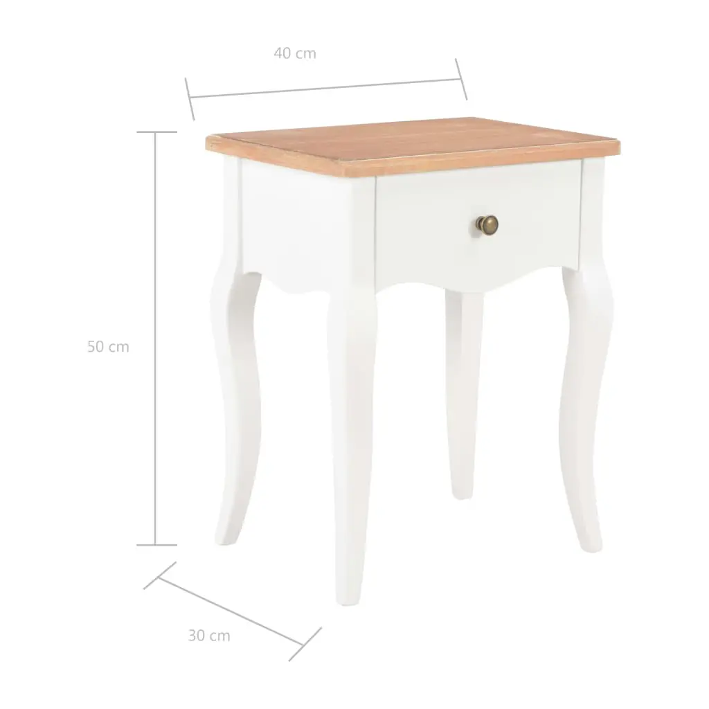 This classic wooden nightstand will make a timeless addition to your interior. The side table is made of MDF and solid pine wood, making it exceedingly robust and durable. This telephone table with 1 drawer provides ample space for keeping your table lamp, alarm clock, magazines, books, as well as other small items within reach. Additionally, the design adds a French style look. The nightstand is easy to be assembled.