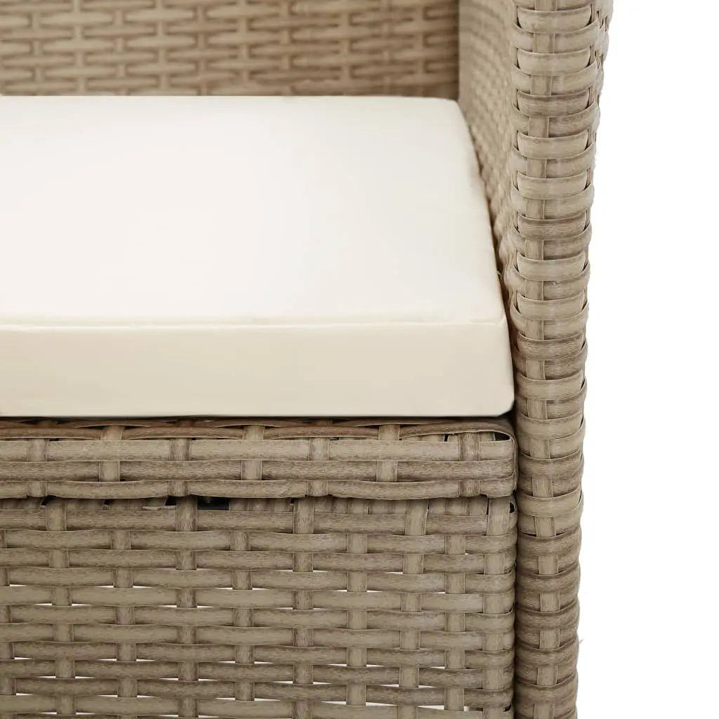 Our stylish poly rattan armchair will become the focal point of your garden or patio! Made of the water-resistant PE rattan, the armchair is easy to clean, hard-wearing and suitable for daily use. The powder-coated steel frames make the chairs strong and sturdy. The reclining chairs give you all the comfort needed. The backrest will recline by pulling the button on the side. Thanks to their lightweight construction, they are easy to move. It is also delivered with highly comfortable, thickly-padded seat cushions for the ultimate comfort. The low-maintenance polyester covers can also be removed and washed. Assembly is easy. Note: We recommend covering the set in the rain, snow and frost.