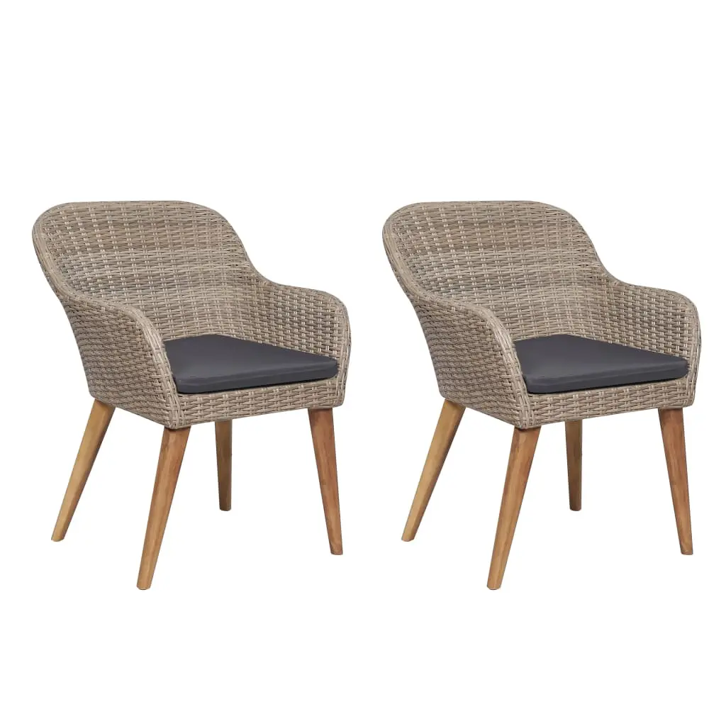 This poly rattan dining chairs will make a great addition to your outdoor living space. It will add a touch of modern elegance to your patio, balcony or garden with its understated yet stylish design. Made of high-quality, weather-resistant PE rattan, the set is easy to clean, hard-wearing and suitable for daily use. The powder-coated steel frame makes the set very sturdy and durable. Thanks to the lightweight construction the set is easy to move around. The thickly-padded cushions make the set more comfortable. The cushion covers are removable and washable. The set needs assembly. Delivery includes 2 dining chairs and 2 seat cushions. Note: We recommend covering the set in the rain, snow and frost for its best service to last.