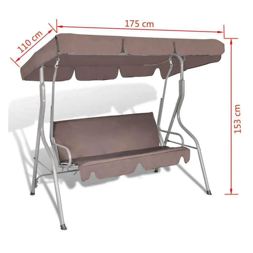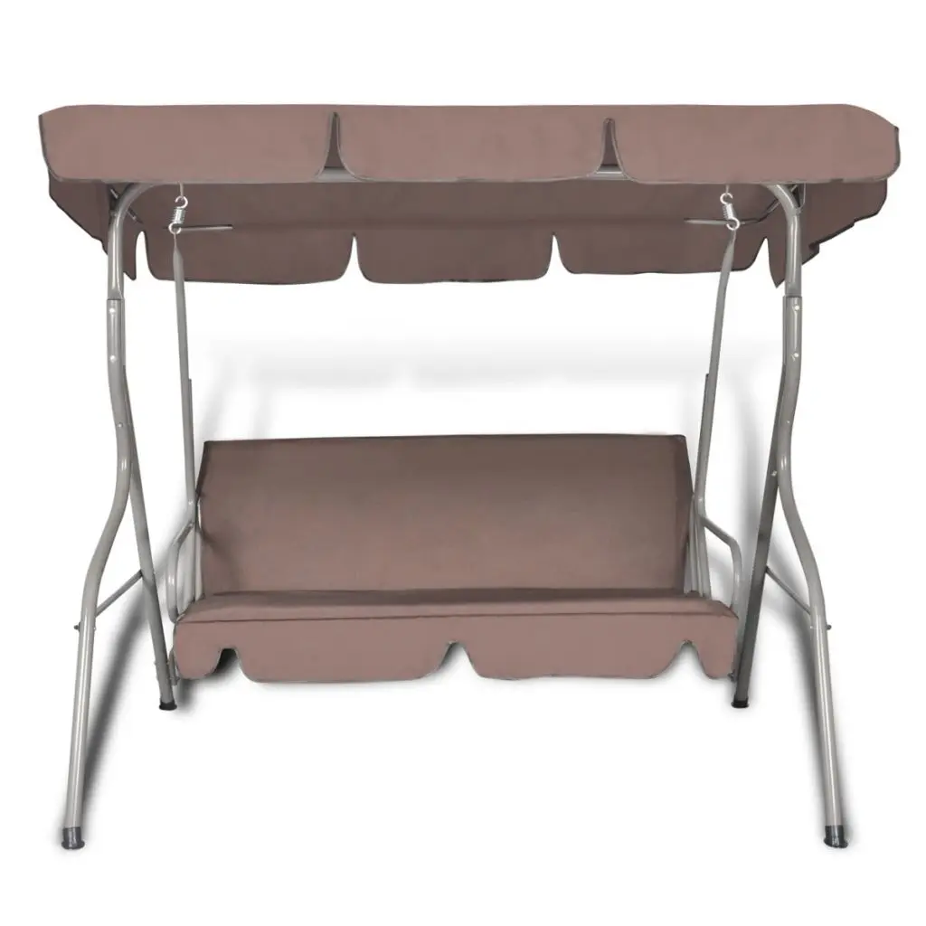 This quality swing bench, including two large cushions and a canopy, will be a real eye-catcher to wherever it goes. It is a perfect choice for relaxation, or to have fun with your families in the garden, backyard, on your balcony or patio. The powder-coated steel frames bring super stability and ensure the swing bench a long service life and excellent durability. The soft seat and back cushions, made of anti-fade and waterproof polyester, will undoubtedly offer optimal seating comfort. The swing bench for 3 persons provides shade from the sun with its large canopy. And you will enjoy swaying on the chair with the summer breeze. The swing bench is easy to clean. Assembly is also easy, with all the necessary fasteners and hanging hooks included. Delivery includes a seat cushion, a back cushion and a large canopy. Our swing bench for 3 persons is a perfect choice for your outdoor space.
