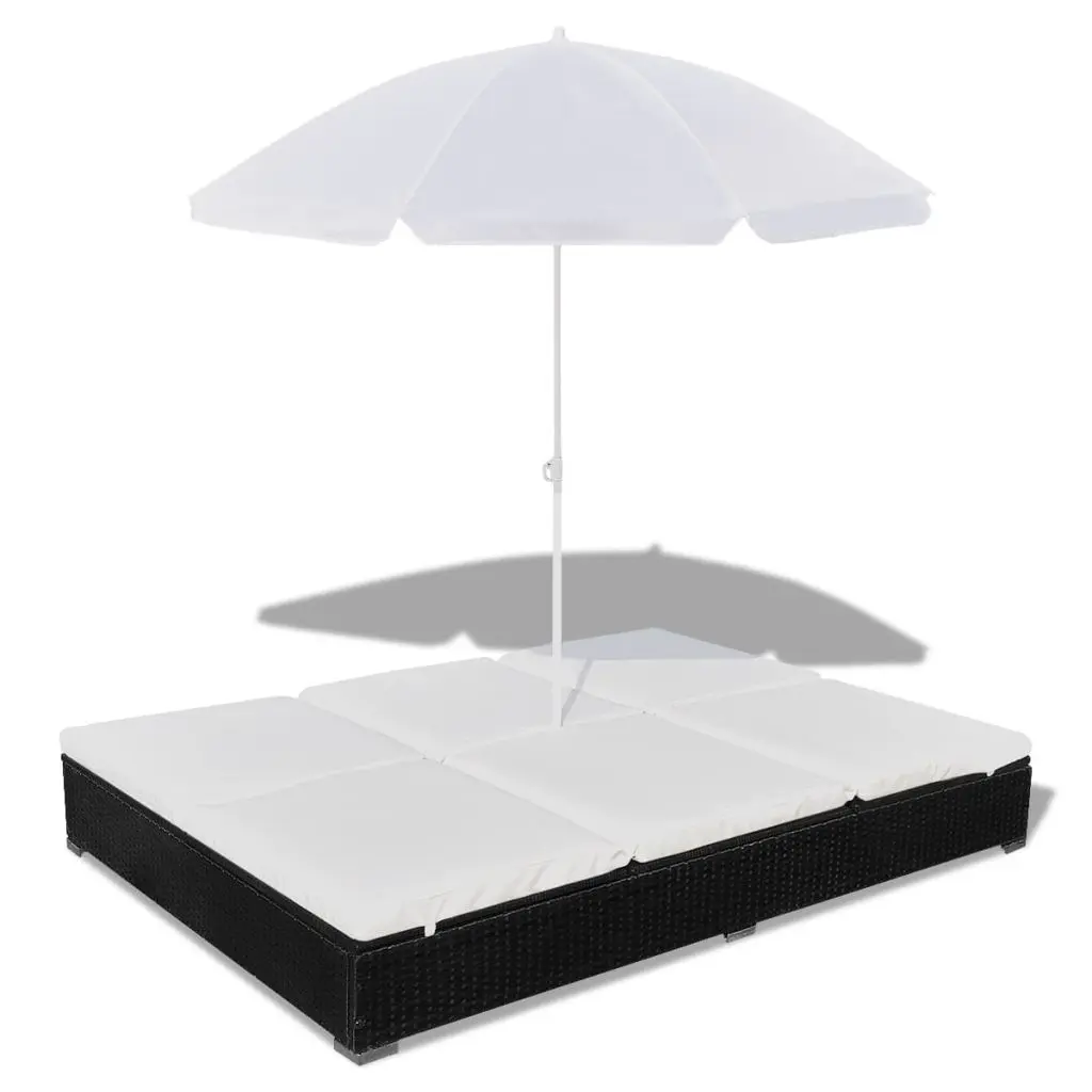 - A double sun lounger with 2 removable cushions and 1 umbrella