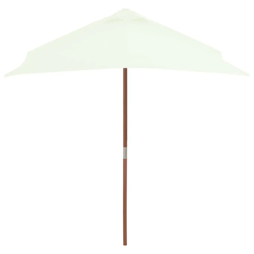 This elegant parasol is perfect to create some shade and protect you from the sun’s harmful UV rays. Made of UV protective and anti-fade polyester, the parasol cover provides you with optimum protection against the sun and is easy to clean. With the pole diameter of 38 mm, it could be mounted on the existing stand or in the middle of tables with holes. The strong wooden pole, along with the 6 durable ribs, makes the parasol very stable and durable. The garden umbrella can be easily opened and closed thanks to the single pulley system. The item is easy to assemble. Please note that we recommend treating the umbrella fabric with a waterproofing spray if it is subjected to heavy rainfall.