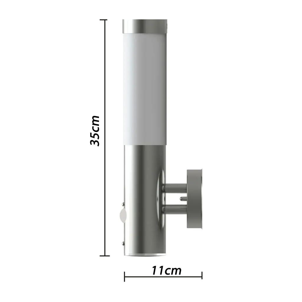 This garden wall lamp will be an ideal device for illuminating your outdoor living space. This wall lamp has a stainless steel housing and is sturdy and durable. Thanks to the frosted glass, the lamp will illuminate beautiful and subtle light. The motion detector makes the lamp turn on automatically when it detects movement. It can be easily installed on a wall or a fence.