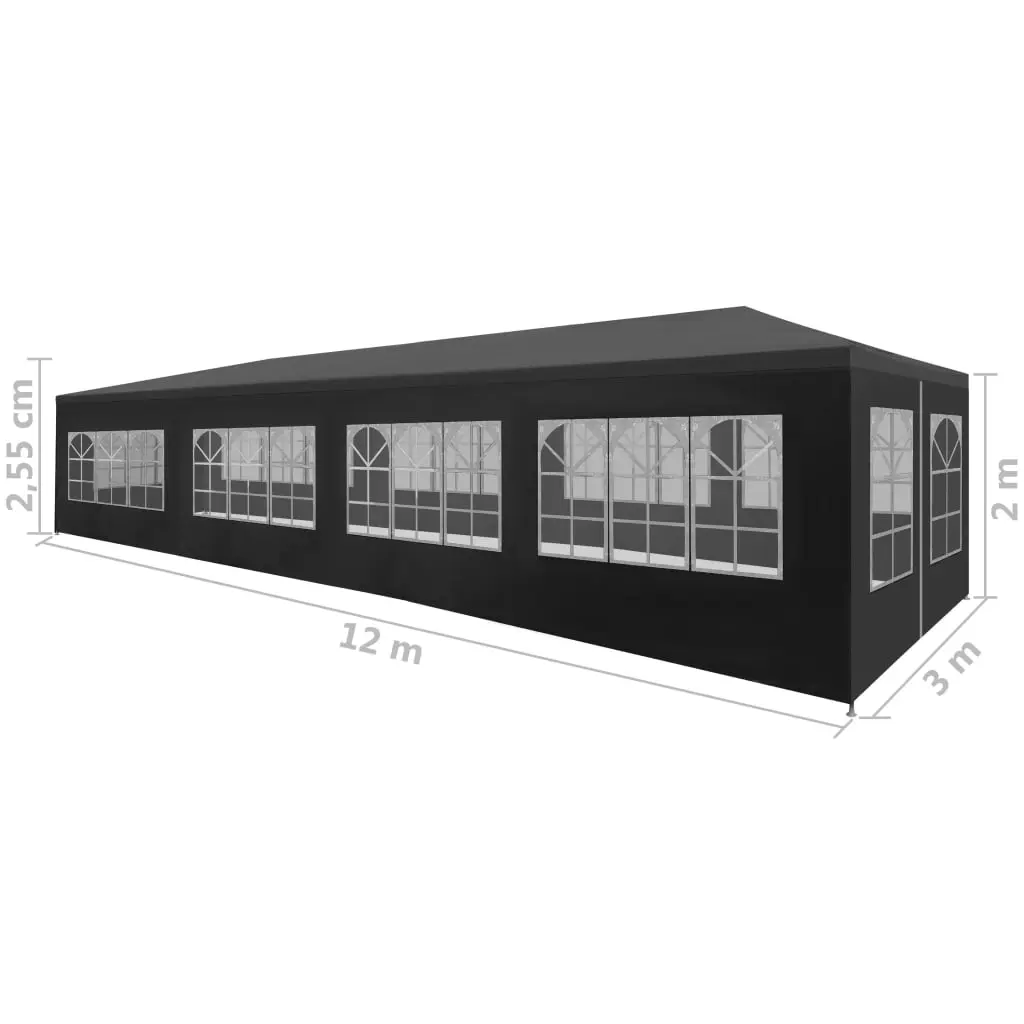 Our partytent provides a wonderful place to entertain your family and friends at all sorts of outdoor parties and get-togethers. The garden marquee is made of UV- and water-resistant polyethylene material and therefore very practical for outdoor use. The frame is manufactured from rust-resistant steel, making the outdoor canopy stable and durable. The party tent has side panels, each with decorative windows, and 1 door panel with a zip for easy entrance. The garden gazebo is easy to assemble. NOTE: We recommend treating the canopy with a waterproof spray if the marquee is subjected to heavy rainfall. This product should NEVER be used under bad weather, such as strong wind, heavy rain, snow, storm, etc. (We are not responsible for damage due to adverse weather conditions.)
