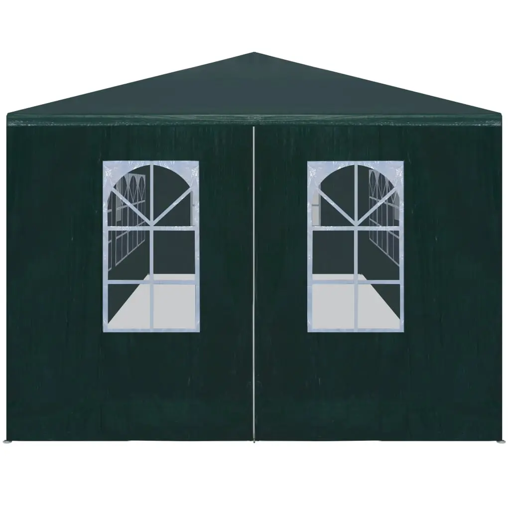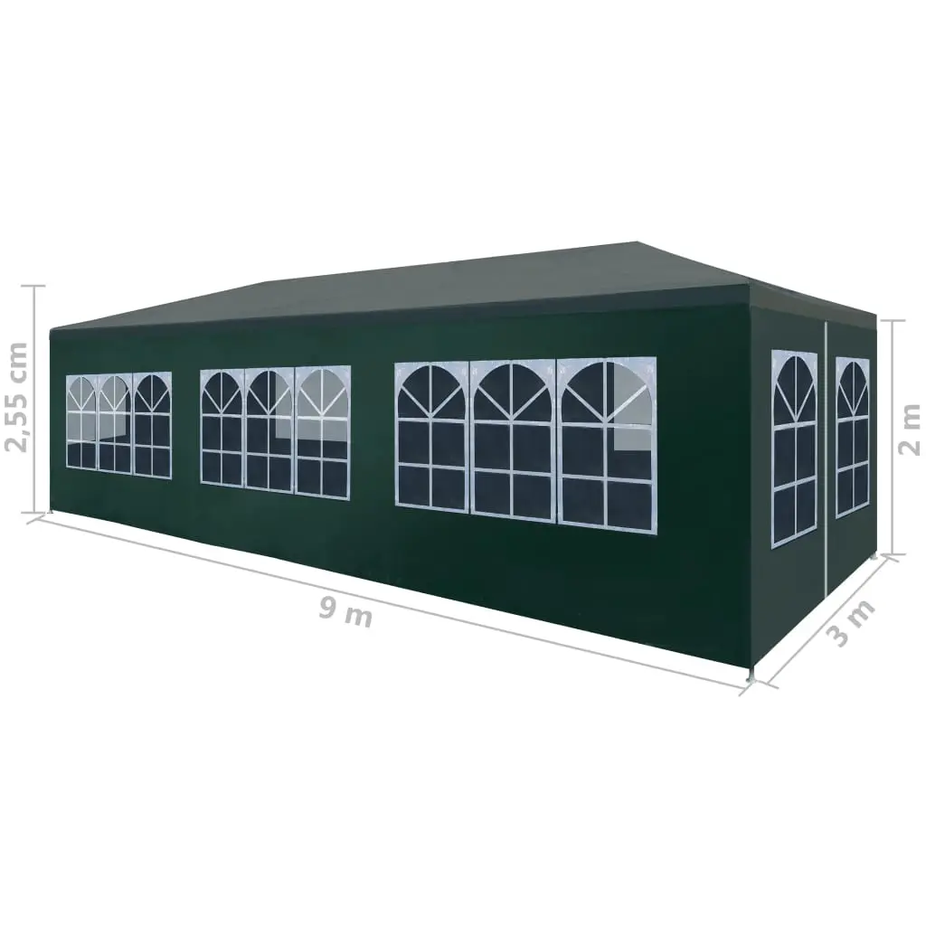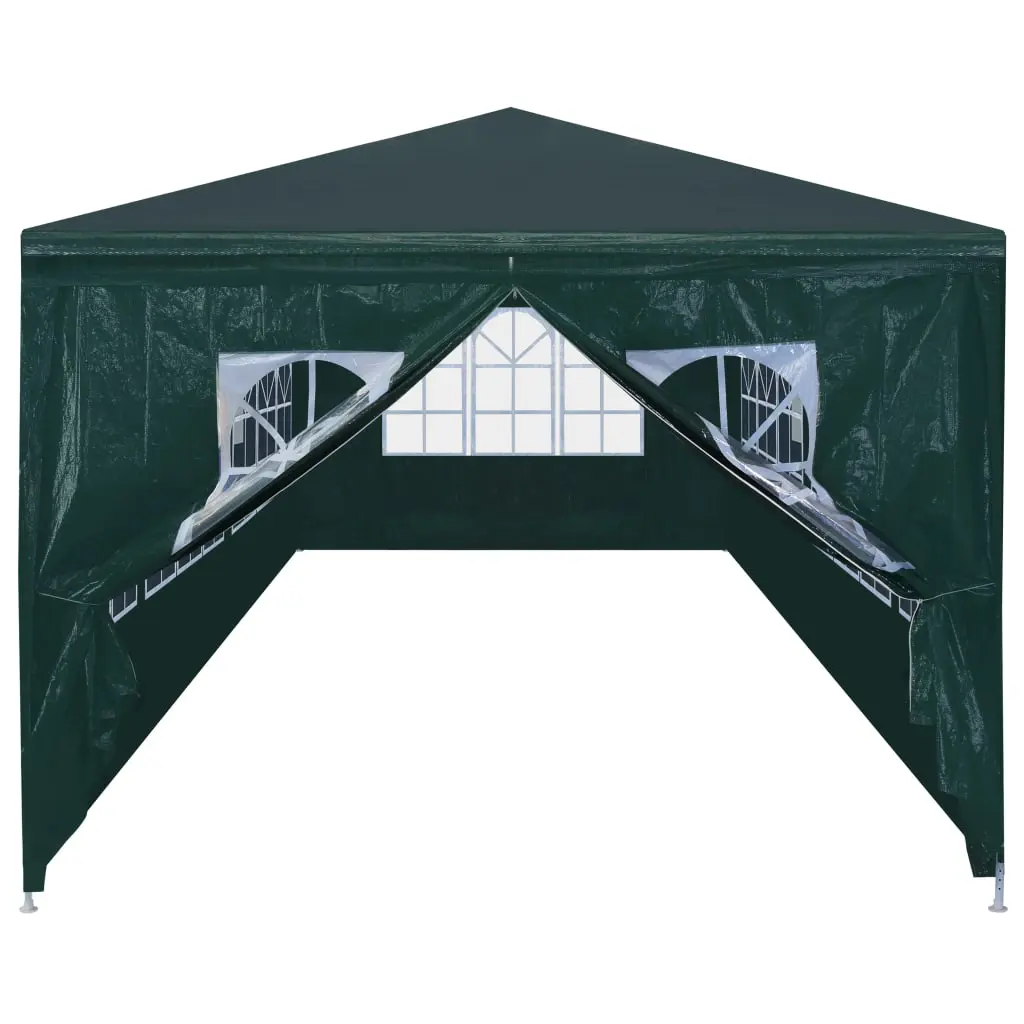 Our partytent provides a wonderful place to entertain your family and friends at all sorts of outdoor parties and get-togethers. The garden marquee is made of UV- and water-resistant polyethylene material and therefore very practical for outdoor use. The frame is manufactured from rust-resistant steel, making the outdoor canopy stable and durable. The party tent has side panels, each with decorative windows, and 1 door panel with a zip for easy entrance. The garden gazebo is easy to assemble. NOTE: We recommend treating the canopy with a waterproof spray if the marquee is subjected to heavy rainfall. This product should NEVER be used under bad weather, such as strong wind, heavy rain, snow, storm, etc. (We are not responsible for damage due to adverse weather conditions.)