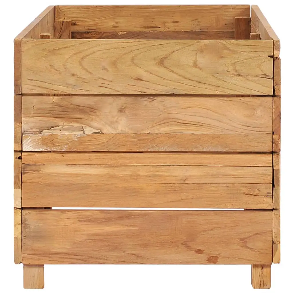 This wooden raised bed can accommodate a considerable number of plants or flowers and will make a stylish addition to your living room, garden, balcony or patio. Made of recycled teak, this planter is very sturdy and durable. The beautiful wood grains make every piece of furniture unique and slightly different from the next. Four wooden legs at the bottom enhance extra stability. The bottom of the planter is equipped with a steel rack to put flower pots on. Additionally, the item is easy to assemble. Important note: The colours vary from piece to piece, making each piece unique; the delivery is random.