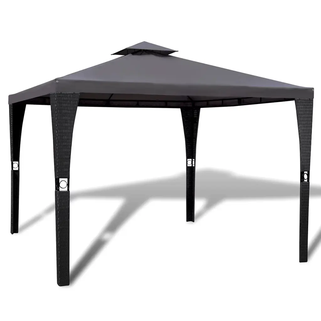 This garden gazebo is ideal for any outdoor event, such as shows, weddings, parties, BBQs, festivals and so on. You can also install it in your backyard as a large sunshade retreat for your family and guests. The frame is made from powder-coated steel which is rust-resistant and lightweight. The woven wicker styling gives the gazebo a chic and attractive look. The roof is made of UV-resistant and tear-resistant polyester, which is water-resistant and very durable. The twin top roof construction allows air circulation on a hot day. This Gazebo is highly durable. Assembly is very easy. The gazebo has holes in its feet and can be easily fixed to the ground with ropes or nails (not included in delivery). NOTE: This product should NEVER be used under bad weather, such as strong wind, heavy rain, snow, storm, etc.