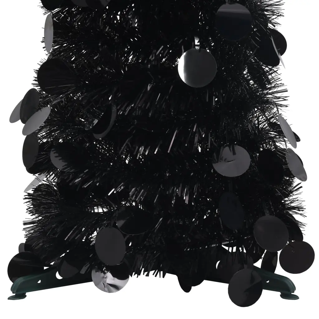 Our shiny black pop-up artificial Christmas tree creates a nice and unique atmosphere in the soon approaching Christmas. This lovely Christmas tree, made of PET material, is lightweight and can collapse down into a tiny shape for easy storage. The holiday decoration can be used again every year, making it a very economical choice compared to a real tree. Additionally, it can be used both indoors and outdoors.