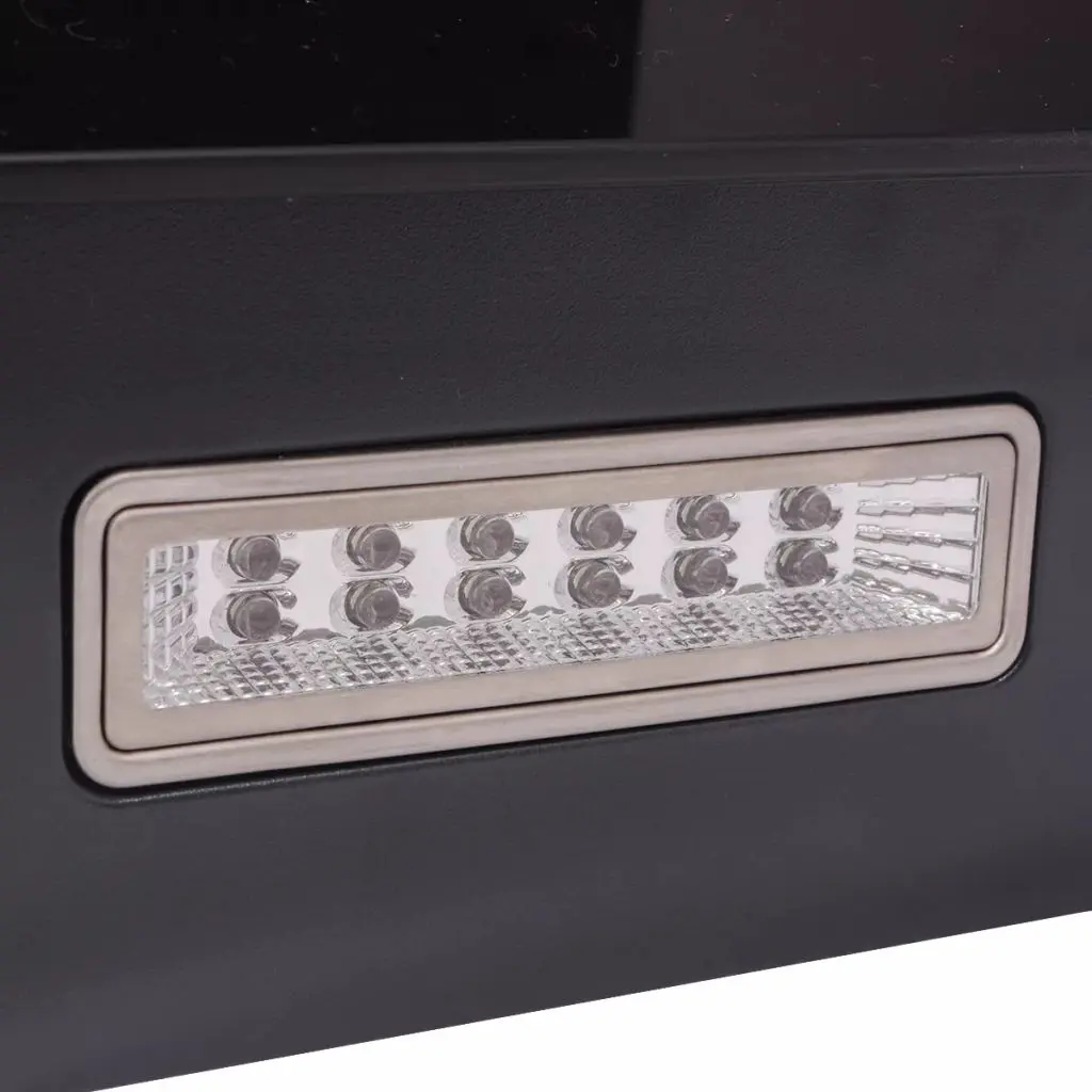 Our ultra-quiet and powerful range hood will effectively extract fumes and smoke, grease, moisture and even heat from your kitchen. This range hood has a powerful 720 m³/h extractor; two 3-layer washable aluminium grease filters are also included to protect the inside of the extractor hood and the exhaust duct from grease. Two built-in LED lamps effectively illuminate the cooking surface and provide energy savings. This side-drafting range hood features a sensitive touch control panel with a digital display, allowing you to easily control the range hood. The touch control is very easy and convenient to operate. It has 3 different speeds for you to choose from. Thanks to the high-quality tempered glass panel and stainless steel chimney, this range hood is very durable and easy to clean. Delivery also includes mounting accessories.