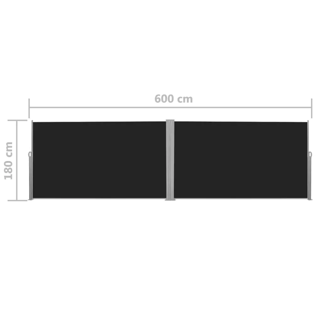 This side awning, featuring a double-sided screen, presents an effective way to deal with a constant wind and low sun, while providing privacy. Stylish and simple, it is a popular choice both for domestic use as well as for restaurants. The garden screen is made of UV-resistant, tear-resistant polyester and has a double cassette with a large, stable base. The retractable awning can be pulled out from both sides of the cassette by the handles. The width of the awning is adjustable to up to 600 cm. The awning retracts automatically. It will make a great addition to your terrace, patio, or balcony. 2 posts and 12 screws are also included in delivery.